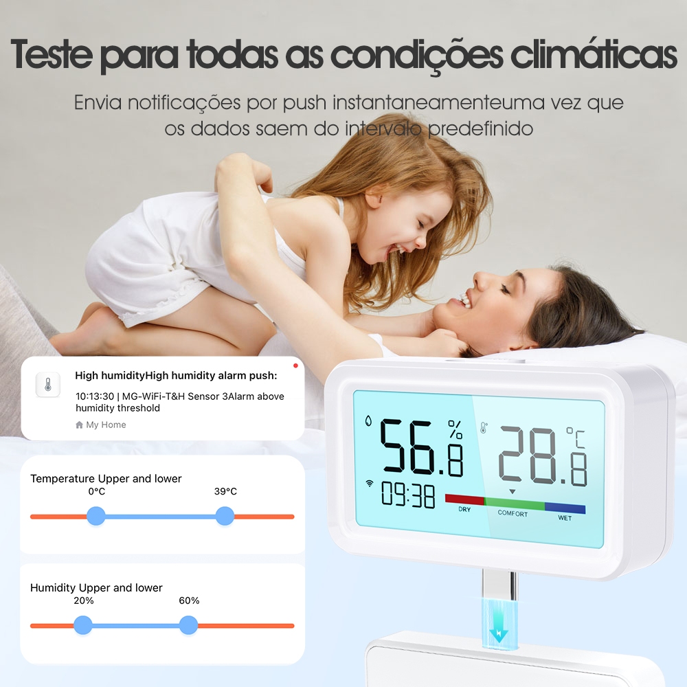 SMATRUL Tuya Smart Home Digital Sem Fio Higrômetro Para Uso Interno Monitor De Sensor Com Luz De Fundo Aplicativo Remoto De Voz Alexa Google Notification Alarm