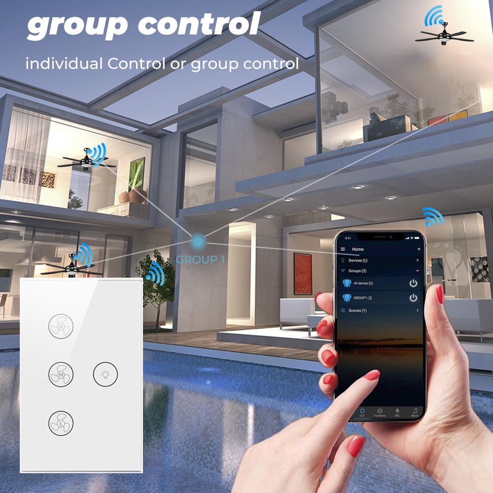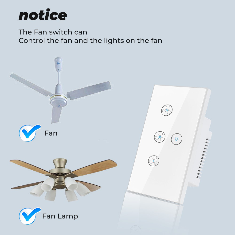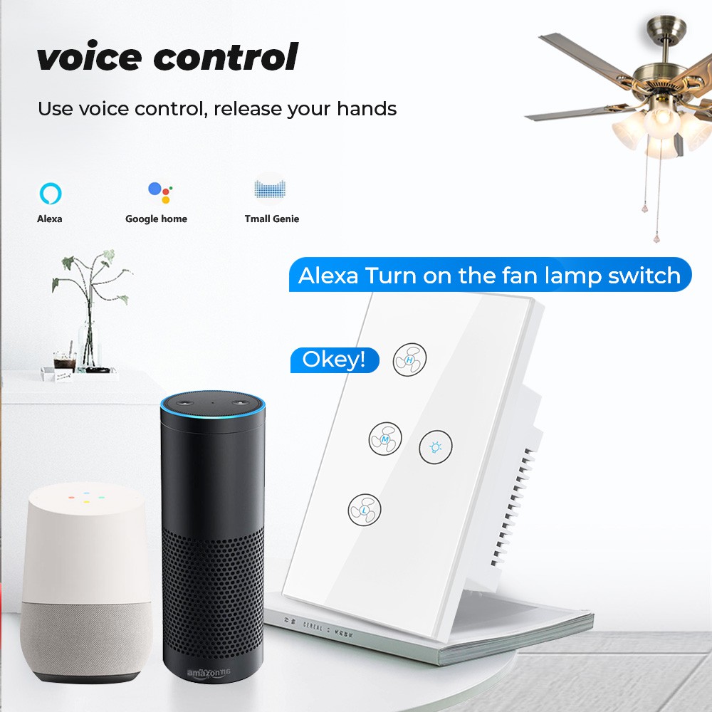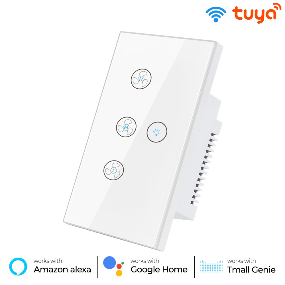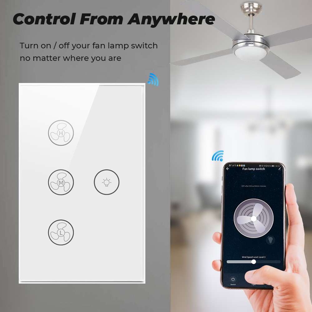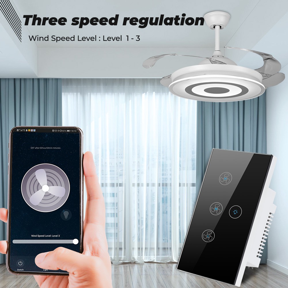Tuya Smatrul Toque Wifi Teto Ventilador Interruptor De Luz Eua 100-240VVida Inteligente Temporizador Remoto Controle De Velocidade De Vidro Da Parede Para Alexa Inicial Do Google