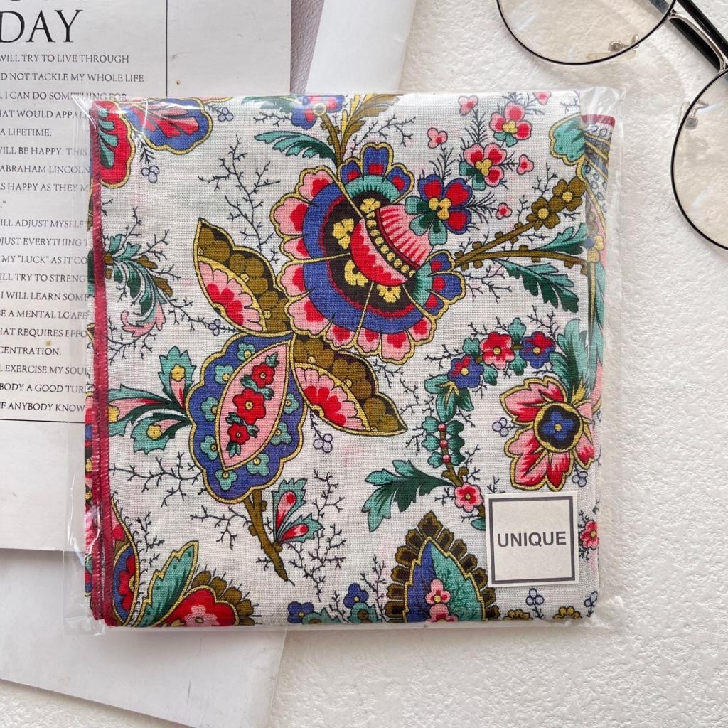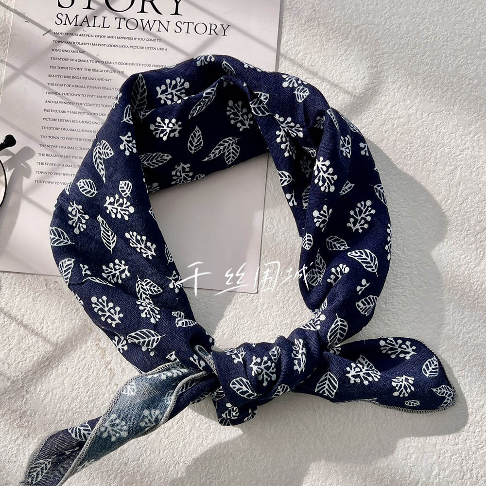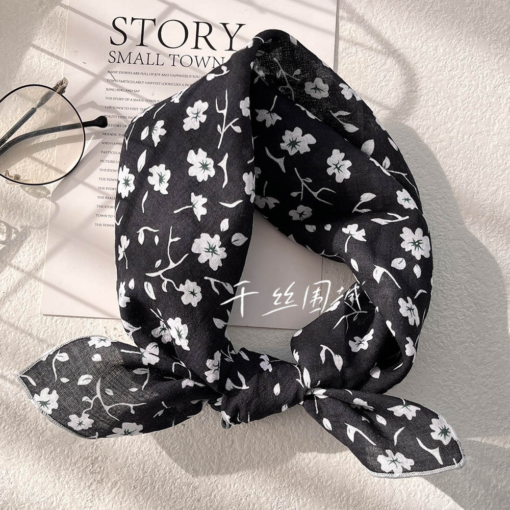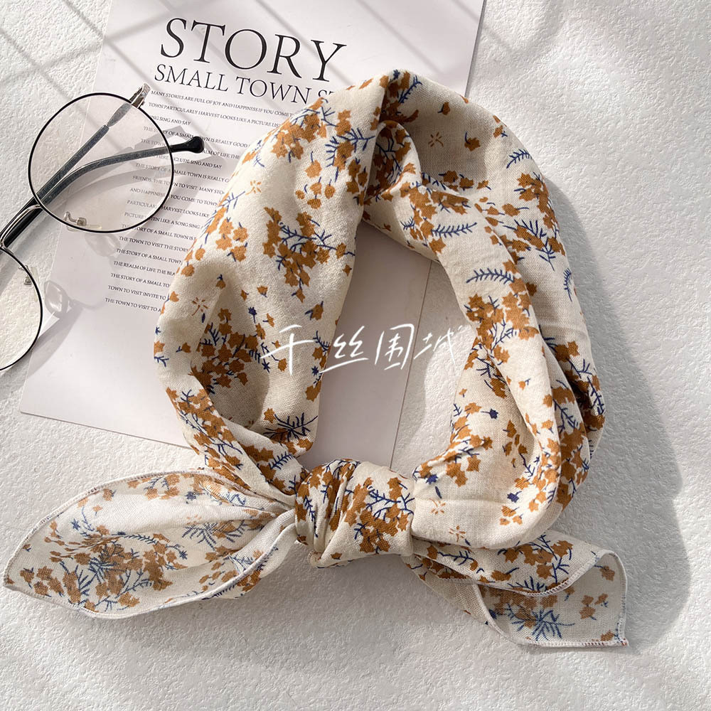 Lenço de Seda Lenço Quadrado Pequeno Lenço de Algodão Feminino Lenço de Linho Fresco Pequeno Floral Decoração Estilo Encriptado Retro Fita de Cabeça Versão Coreana Exquisita