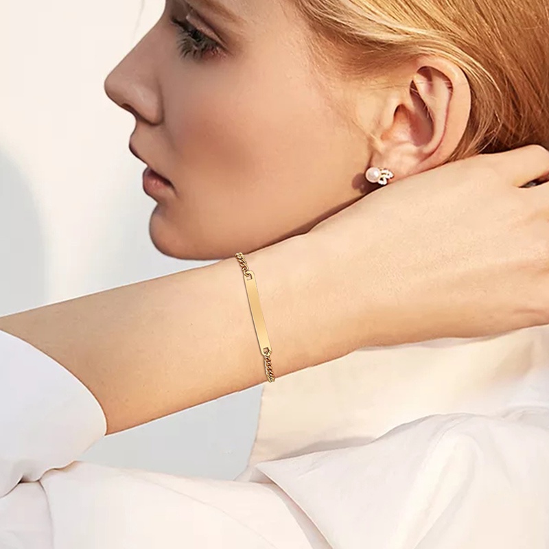 Vnox Gravura Personalizado De Aço Inoxidável Pulseira Da Placa De Identificação Cadeia Tag Pulseiras Para As Mulheres