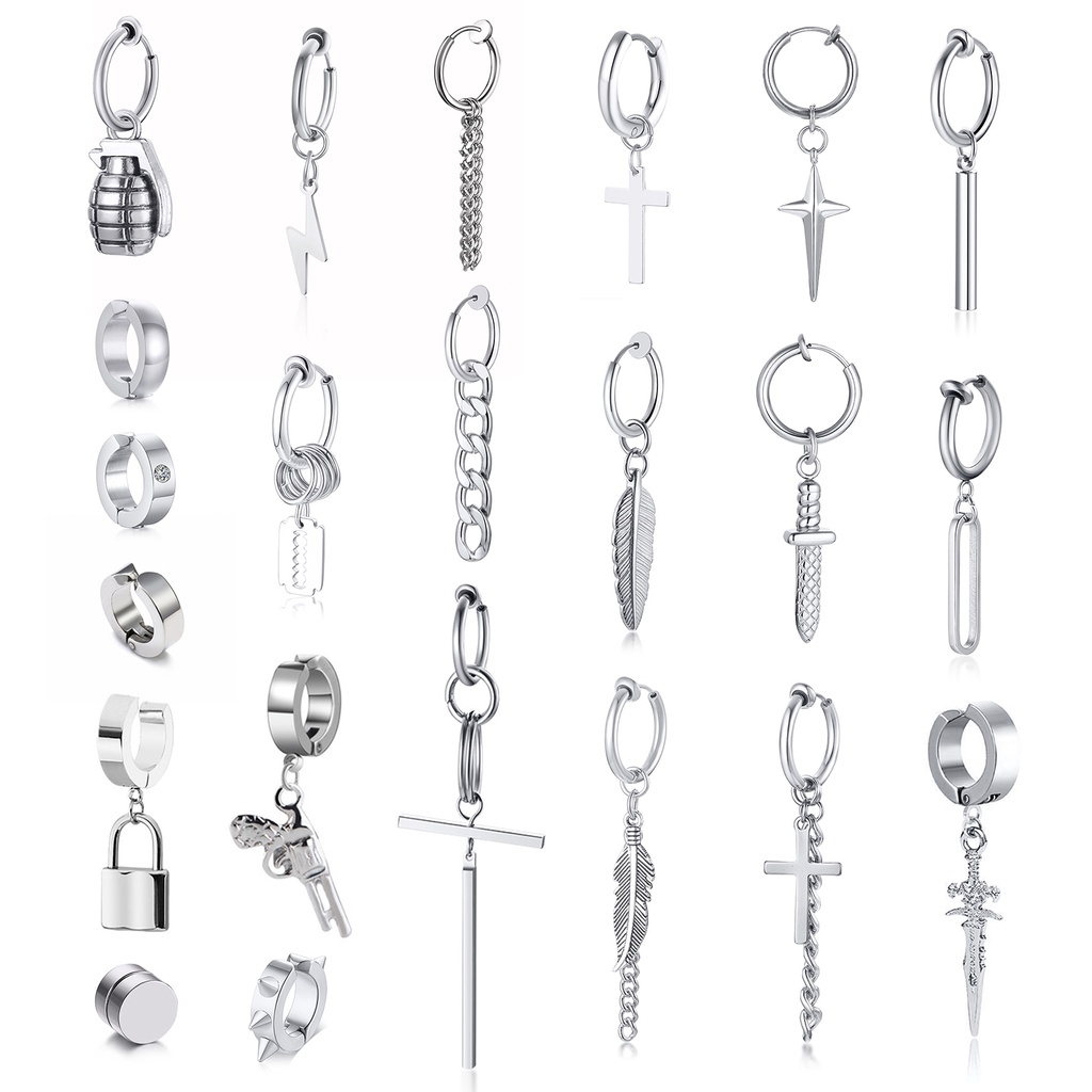 Vnox Novo Popular 1 Peça De Aço Inoxidável Clipe Ouvido Indolor Brincos Para Homens / Mulheres Do Punk Preto Não Piercing Brincos Falsi @ @ Ficados Jóias Presentes