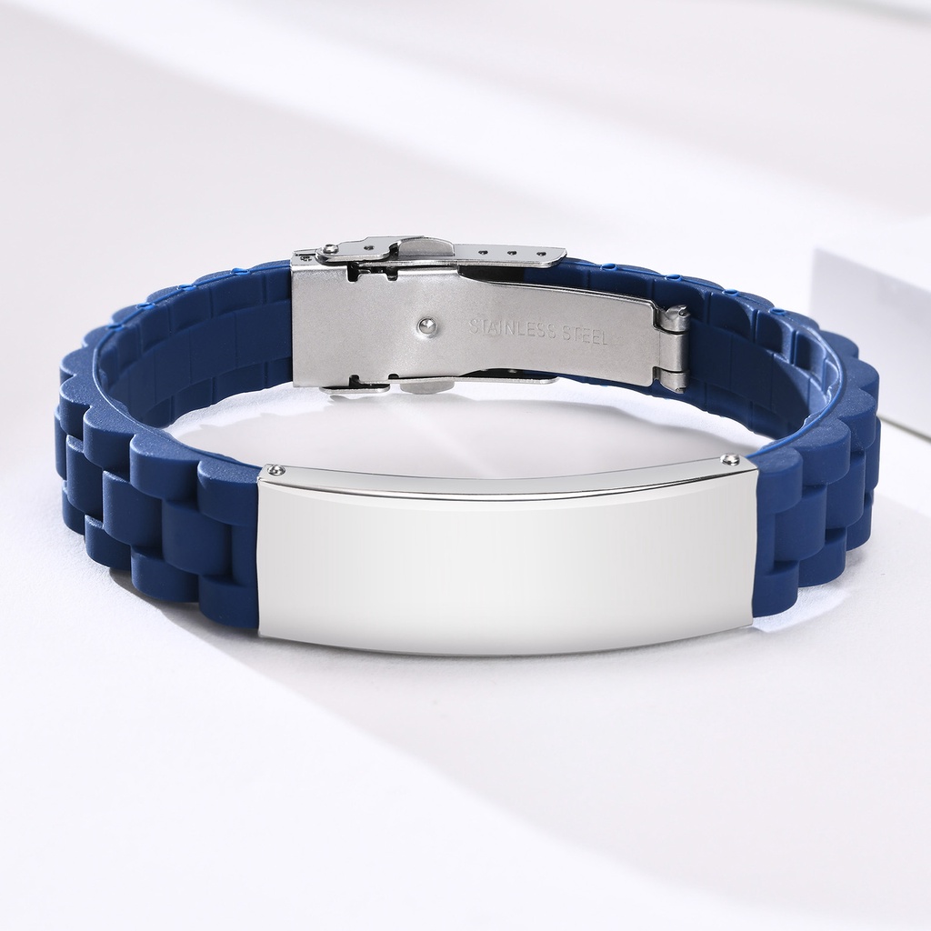 Vnox Gravado Personalizado De Aço Inoxidável Dos Homens De Borracha Azul Pulseira De Silicone Tamanho Ajustável