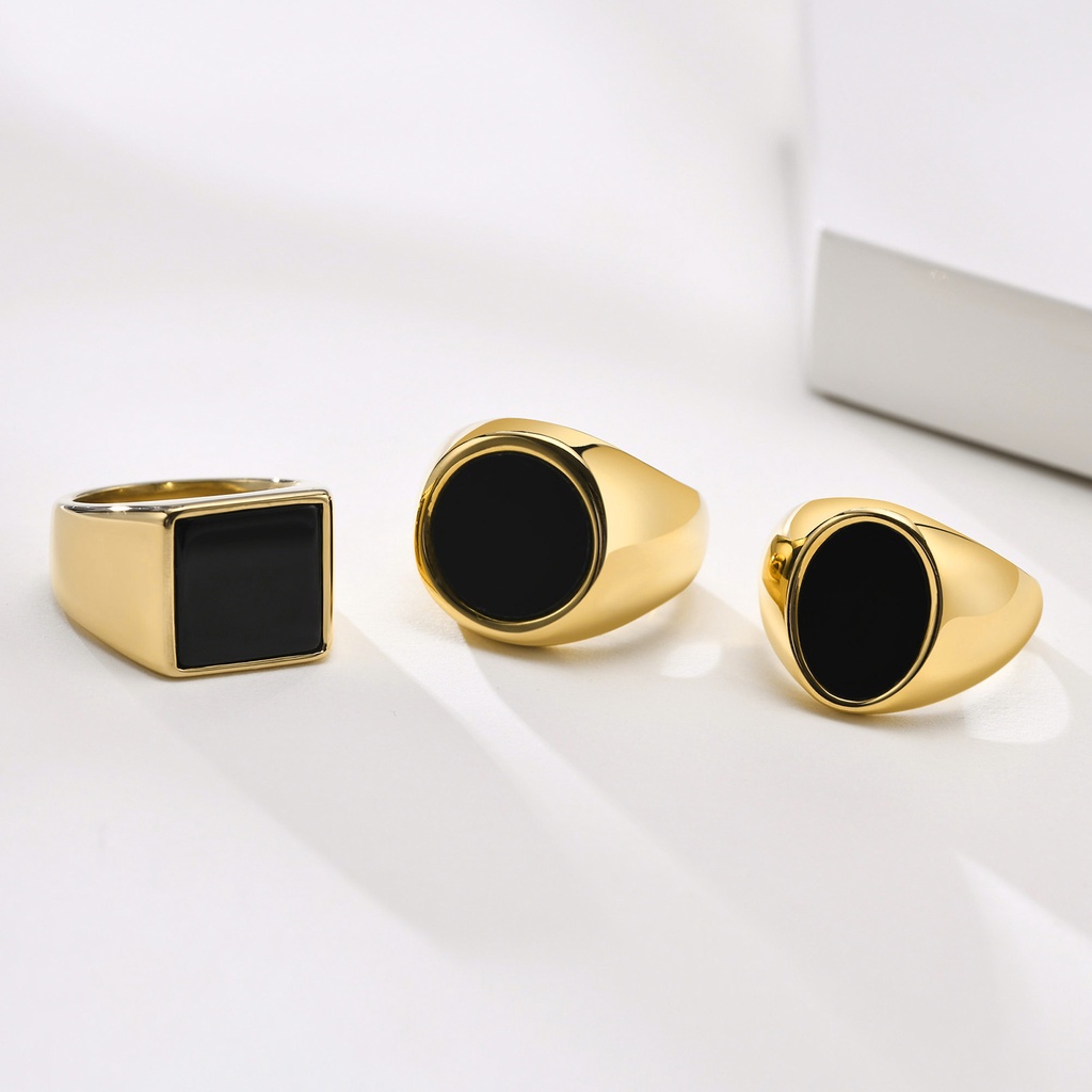 Vnox Epoxy Preto Rodada Anel De Aço Inoxidável Para As Mulheres Homens Banhado A Ouro Jóias