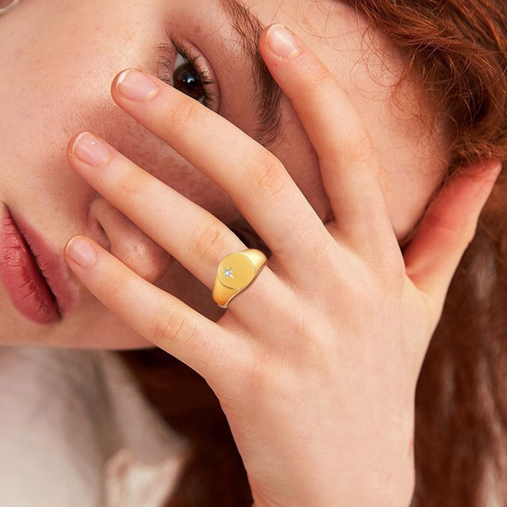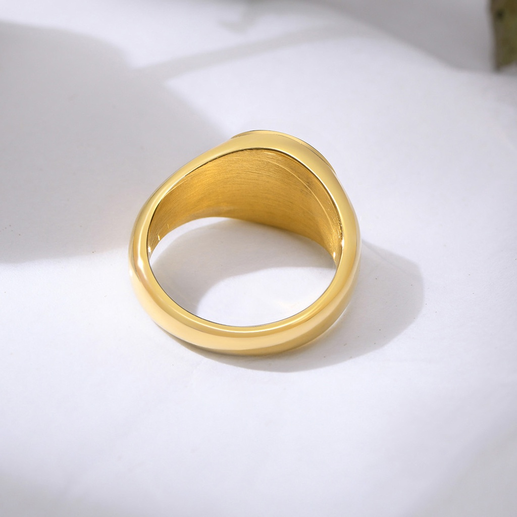 Vnox Women Signet Ring with Zircon,Gold Tone Round Stainless Steel Finger Band,Punk Rock Girls Jewelry