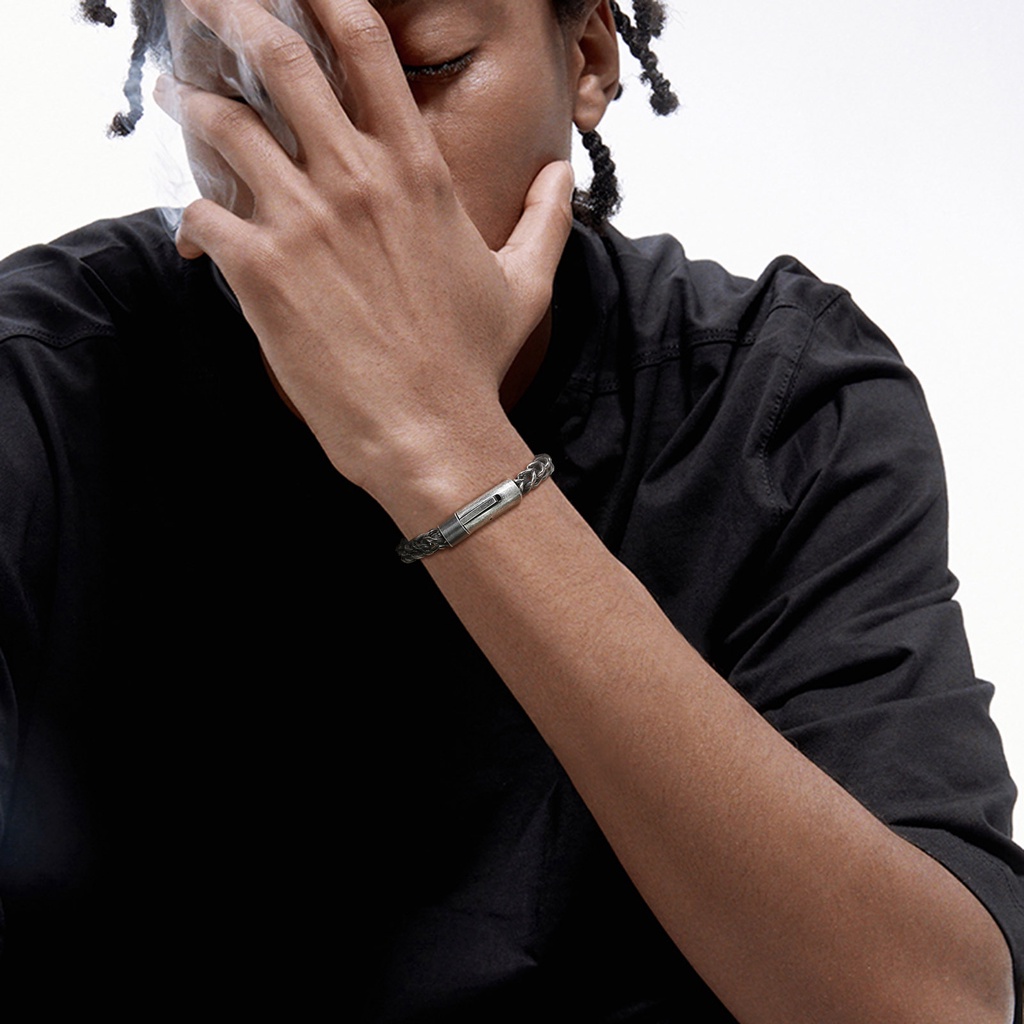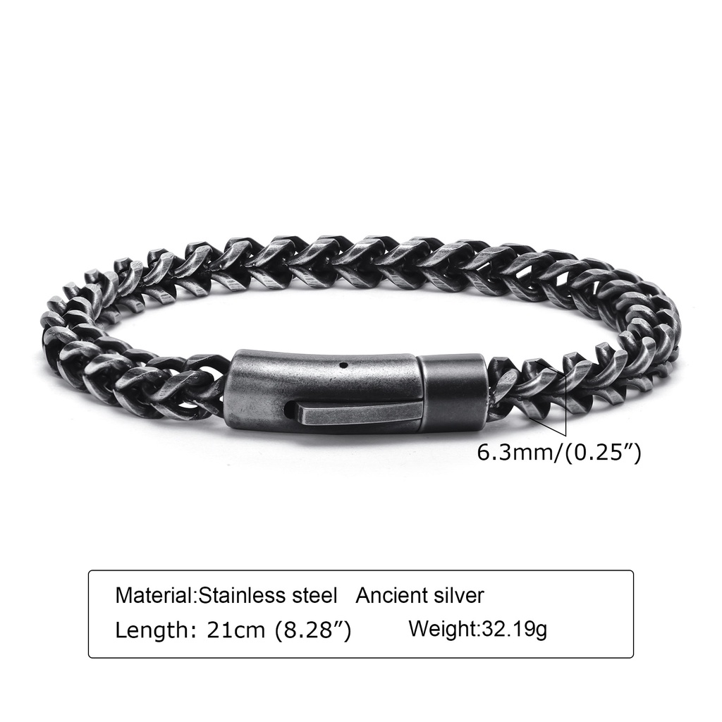 Vnox Marca De Moda Masculina De Aço Inoxidável-Rodada Milled Cadeia Pulseira Vintage Cinza Snap Botão Presente Da Jóia