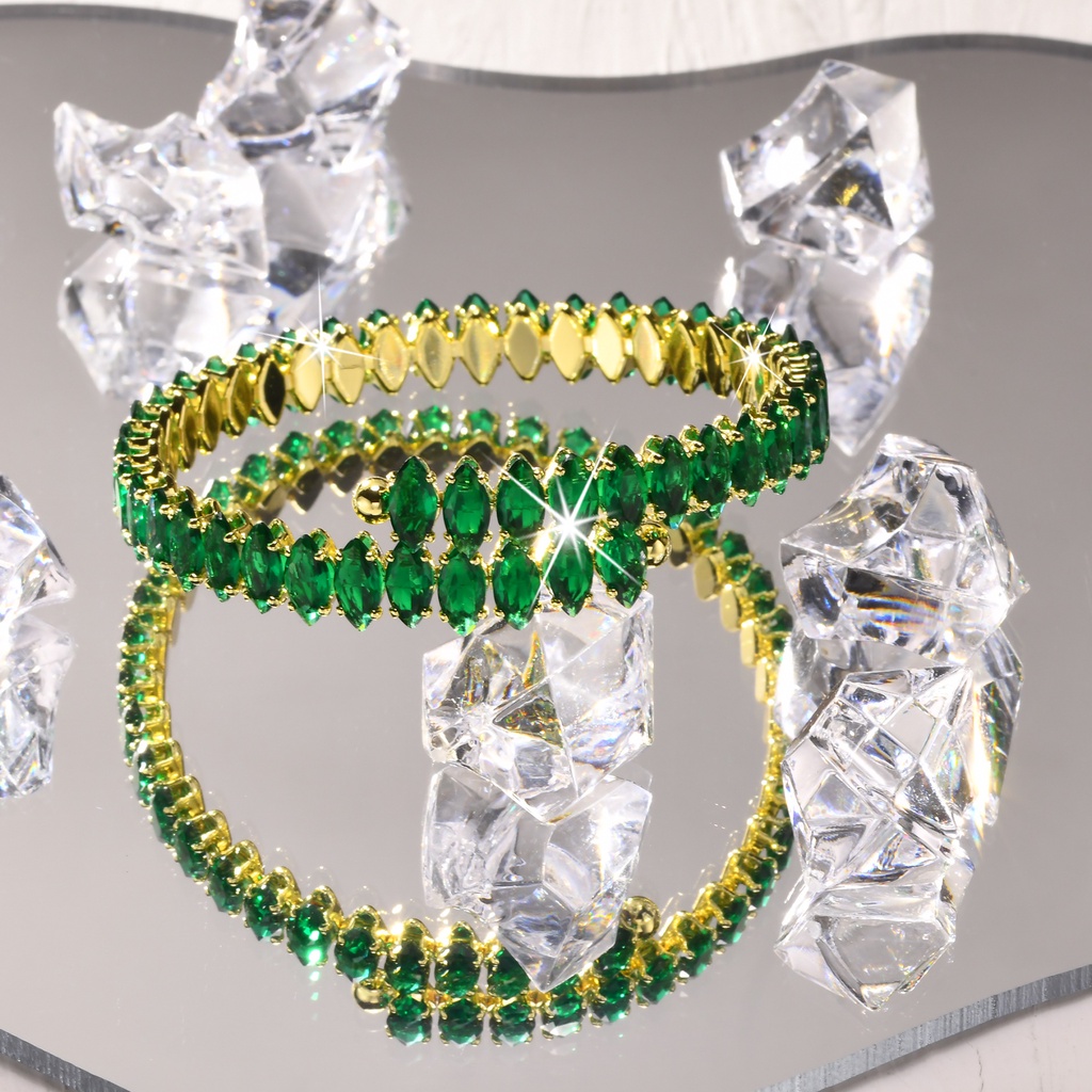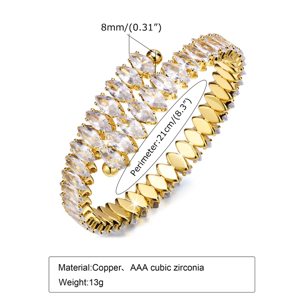 Vnox 8MM Pulseira Aberta De Tênis Zircon , Em Zircônio , De Feriado De Verão Colorida De 18K Gold Metal Cuff Bangle
