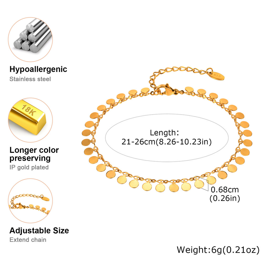 Vnox Cor Dourada Borla Tornozeleiras Corrente Para Mulheres De Aço Inoxidável Feminina Etiqueta Redonda Pé Jóias Acessórios De Verão