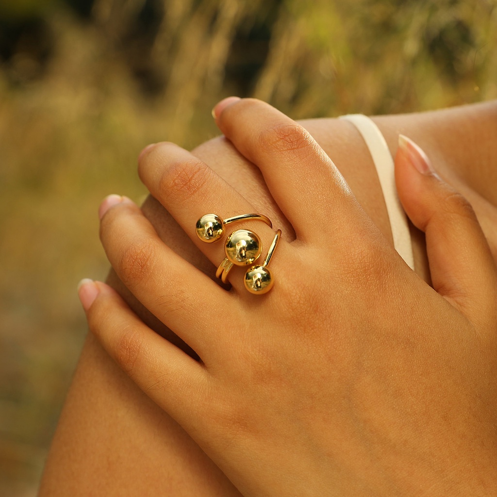 Anel De Órbita Interstellar Vnox Circle Ball Para Mulheres , Geometria De Ouro 18K Acessórios De Estilo Exagerado Jóias