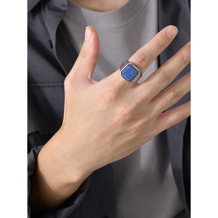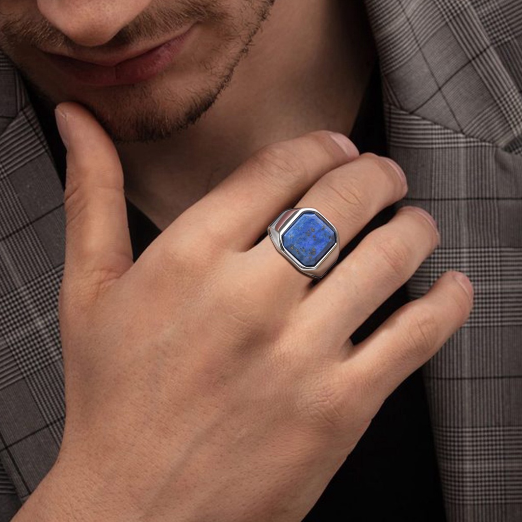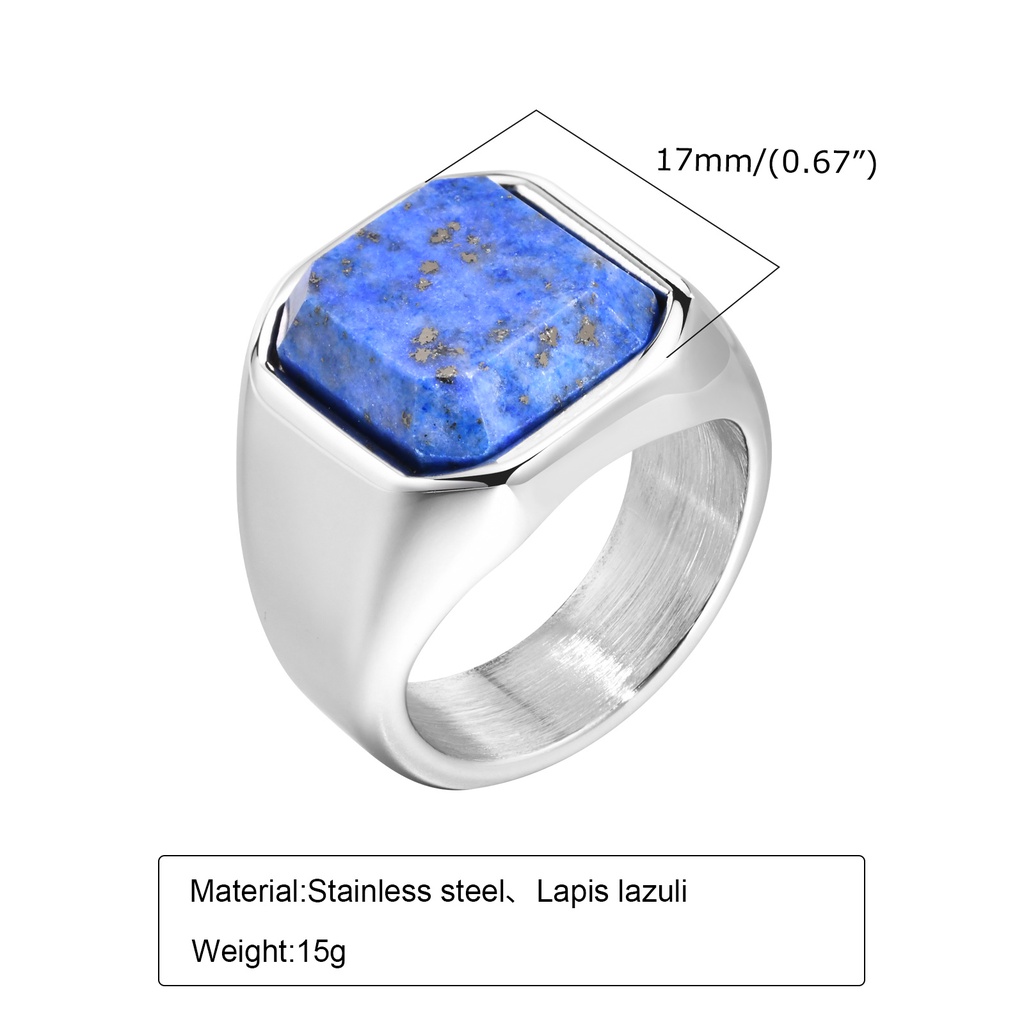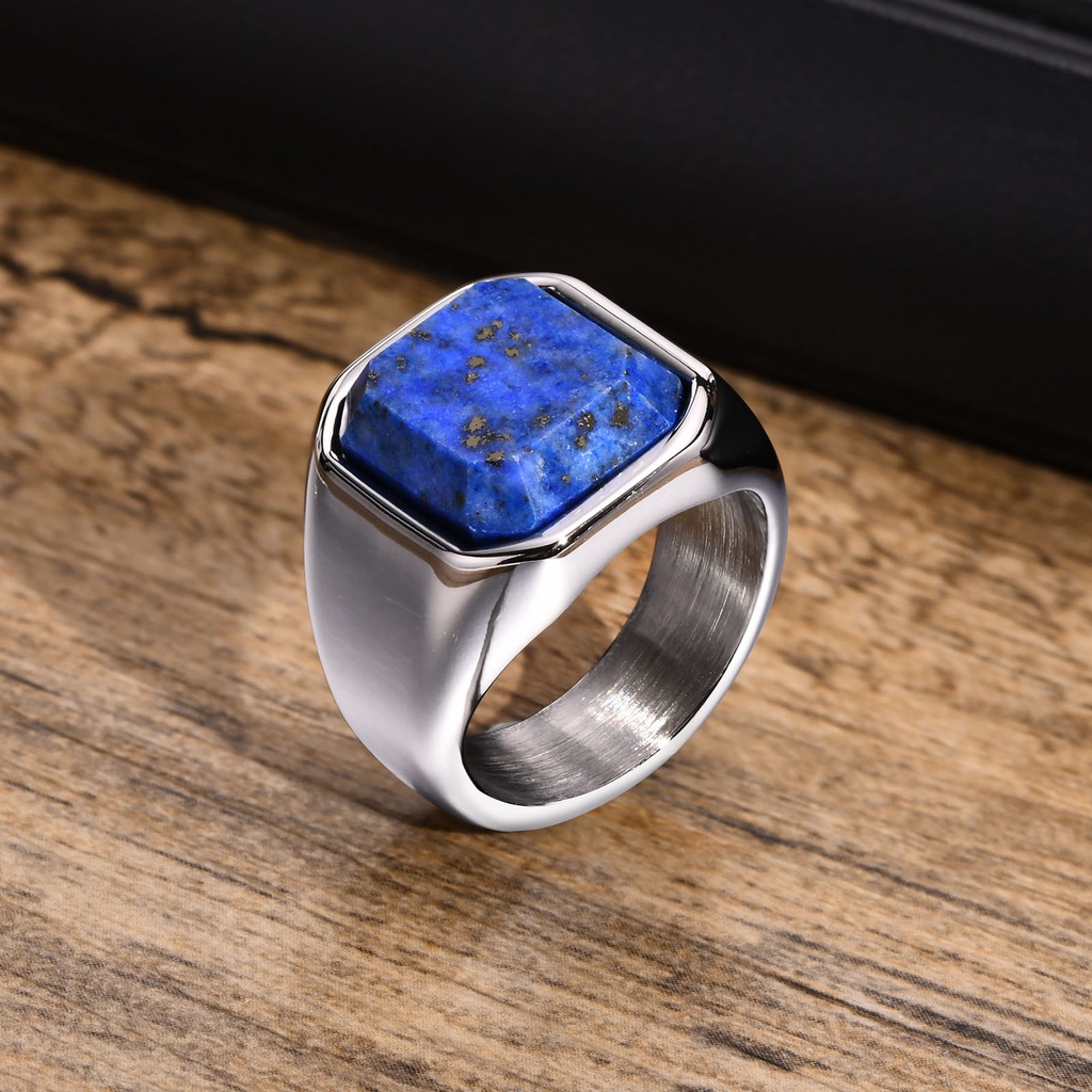 Vnox Elegante Anéis De Sinais De Pedra Natural Quadrada Para Homens , Anel De Dedo De Metal De Aço Inoxidável Jóias De Presente Festa