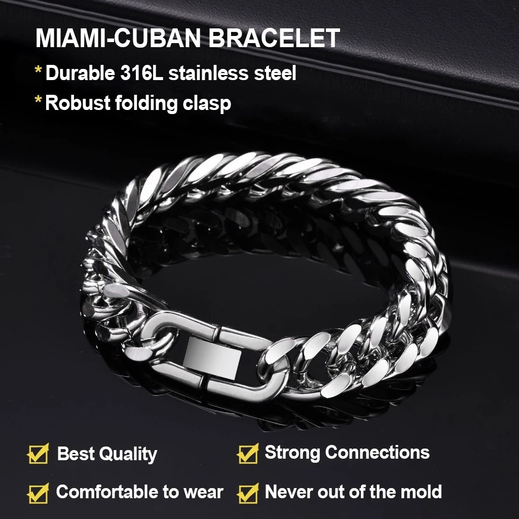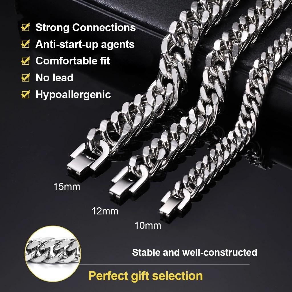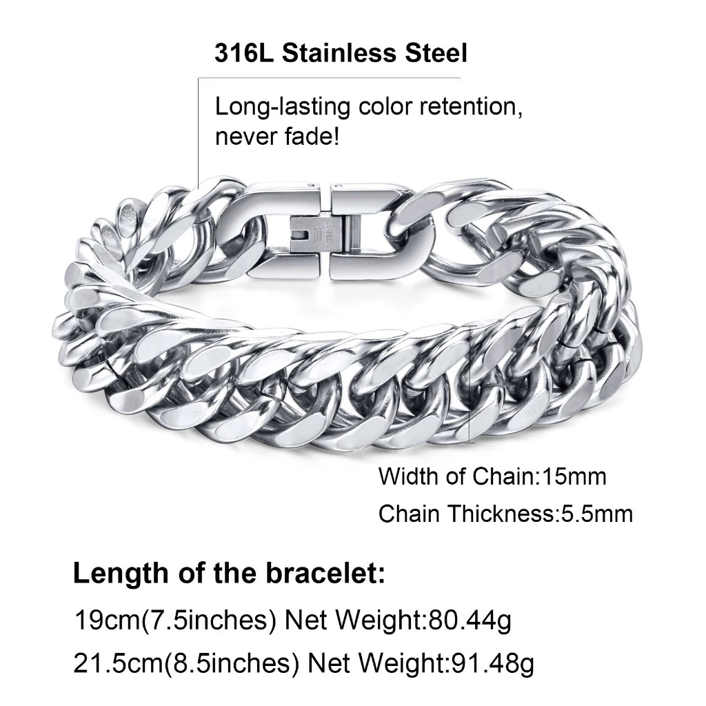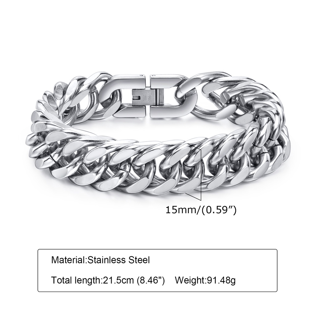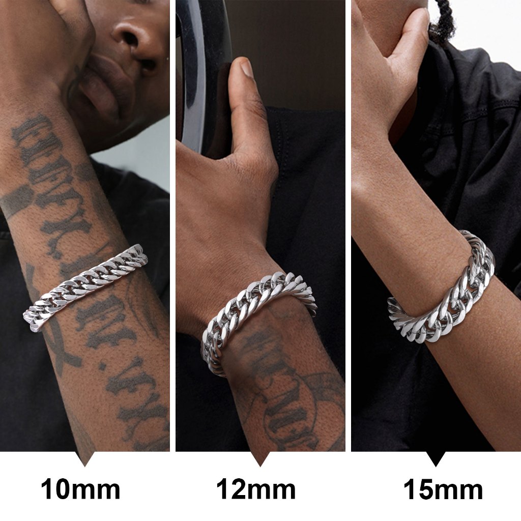 VNOX Pulseira Cubana 12/15MM Em Aço Inoxidável Masculino - Prata Hip Hop Presente Moda Para Homens