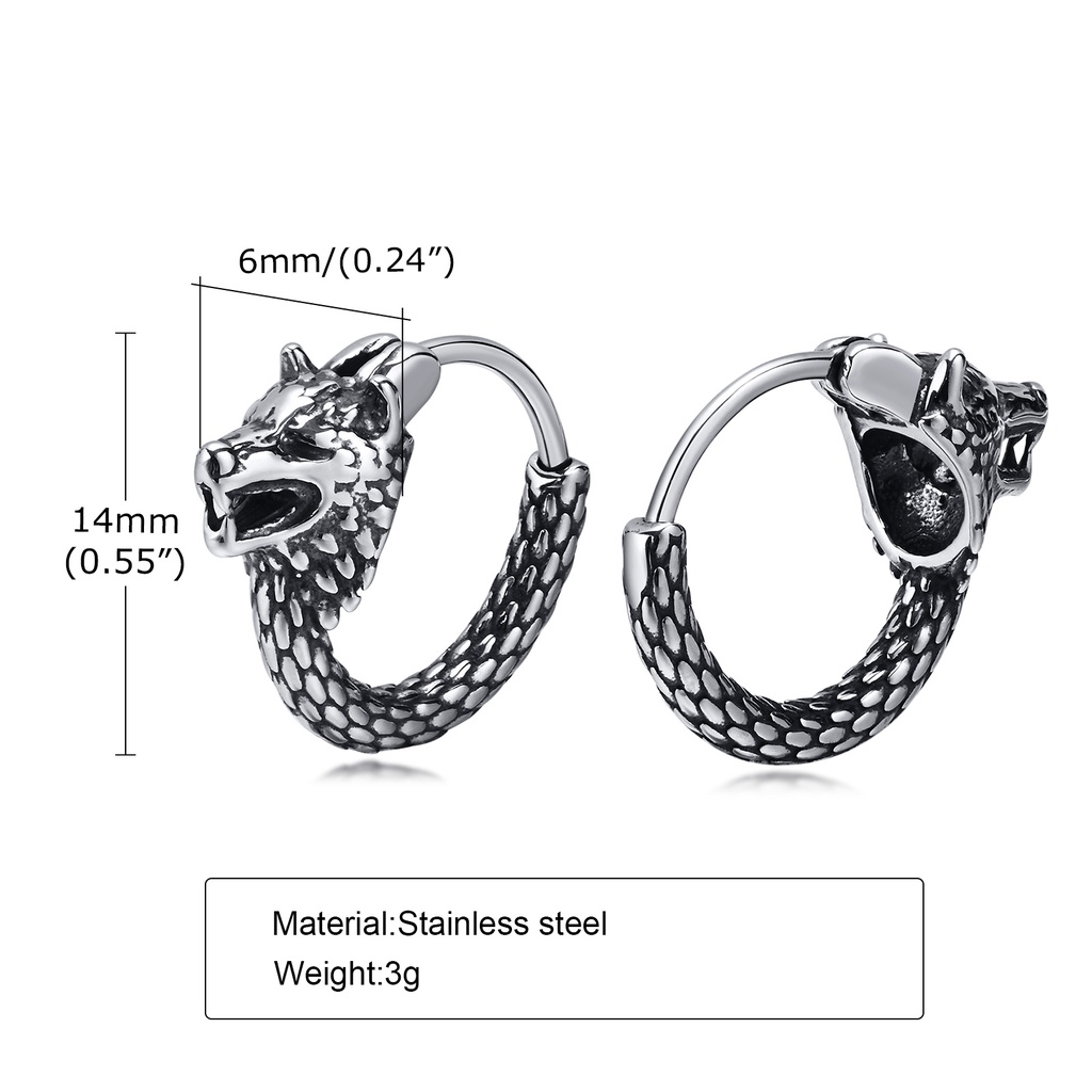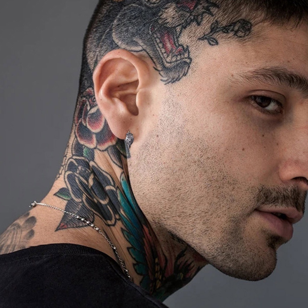 Brincos Vnox Moda Masculina , De Aço Inoxidável Cabeça De Lobo Luz Completa Para Homens Jóias