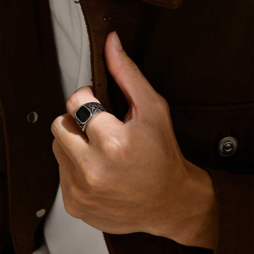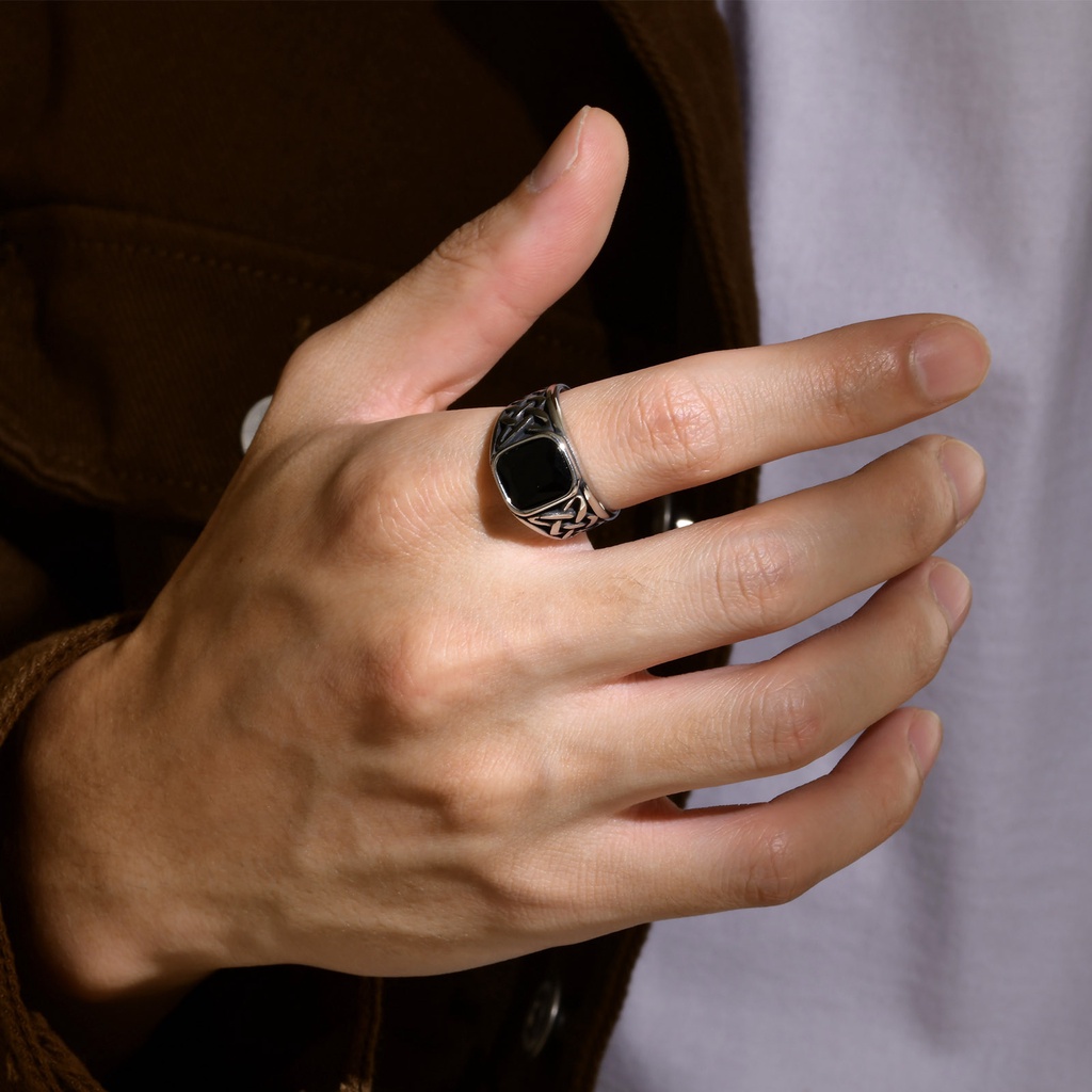 Anel De Aço Inoxidável Masculino Vnox , Quadrado Claro Completo De Vidro Preto Celta Colorido Jóias De