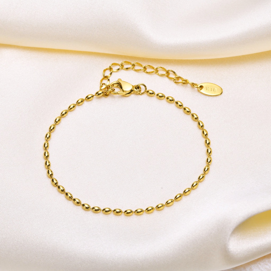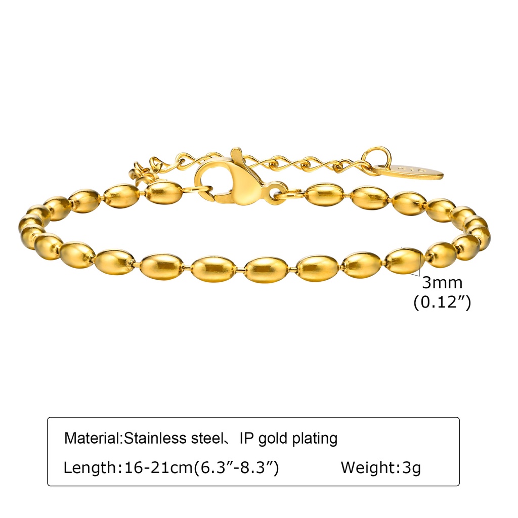Vnox 18K Gold Rugby Bead Chain Bracelet Para Mulheres , 2MM/3MM/5MM Bracelete De Aço Inoxidável Link