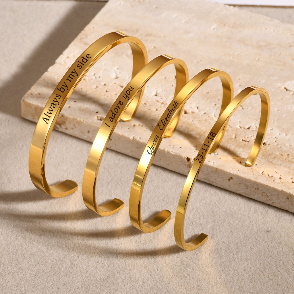 Vnox Bangle Personalizado Para Mulheres , Ouro 18K Pulseiras De Aço Inoxidável Simples , Jóias Clássicas Presente BFF