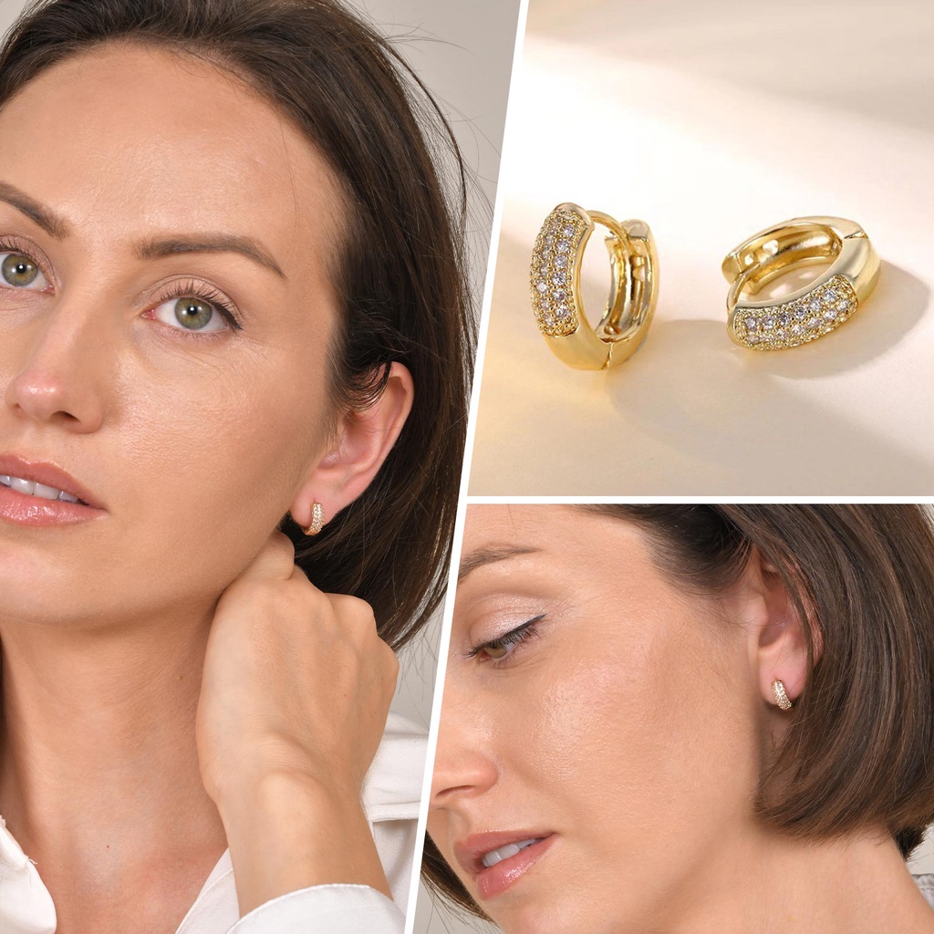 Brinco Vnox 24K Zircon Cubic Small Cute Hoop Earring , Hipoalergênico Brilhante Para Menina Feminina