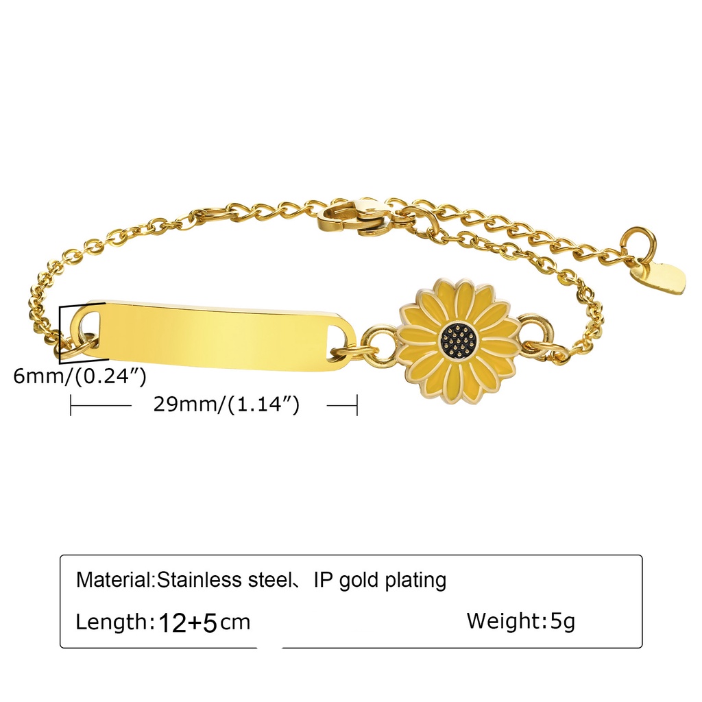 Vnox Baby Bracelet Nome Personalizado ID Girassol Elo De Corrente De Aço Inoxidável , Presente De Aniversário