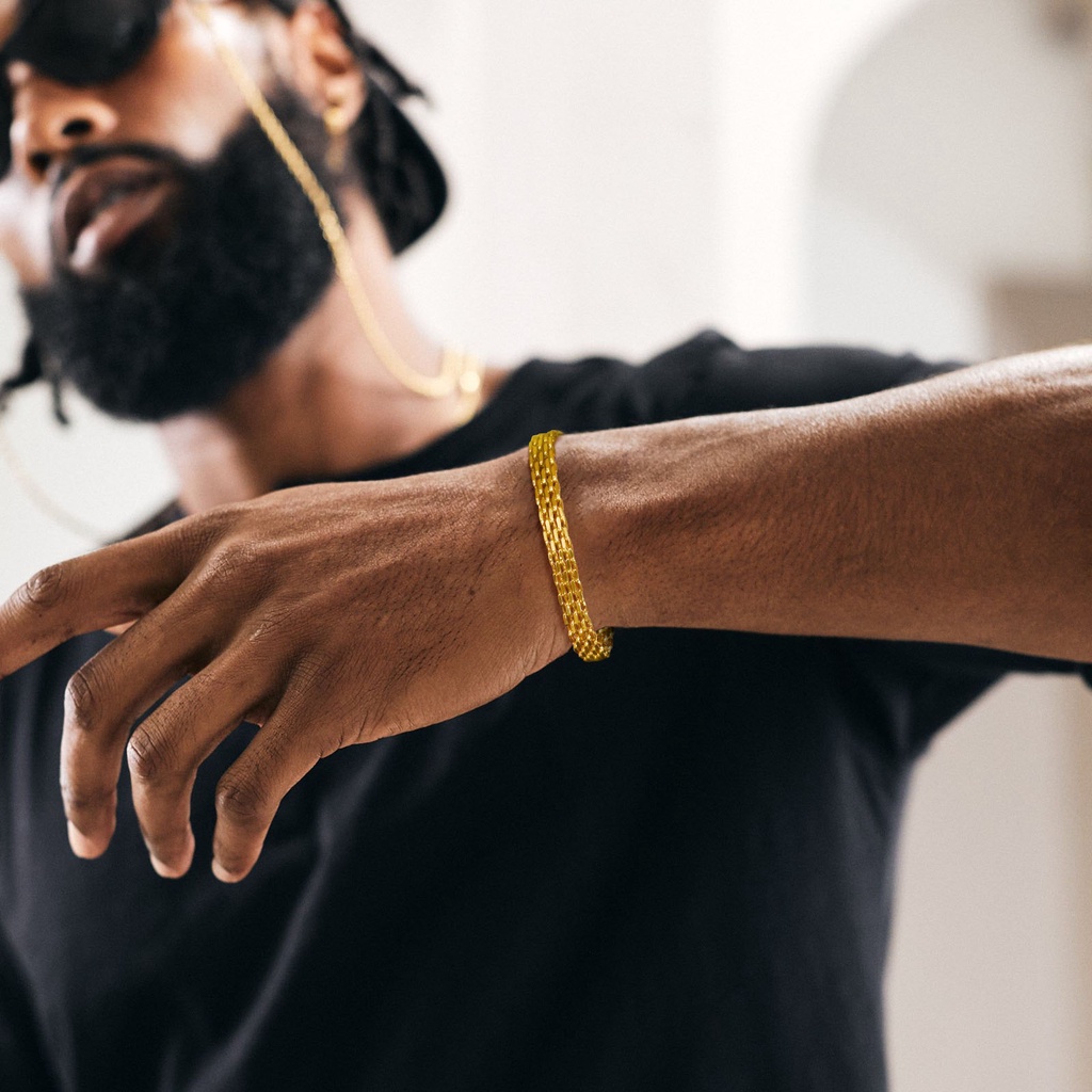 Vnox Pulseira Fashionable Aço Inoxidável Para Homens , De Malha Combina Com Tudo Ouro Luxuosa Mulheres