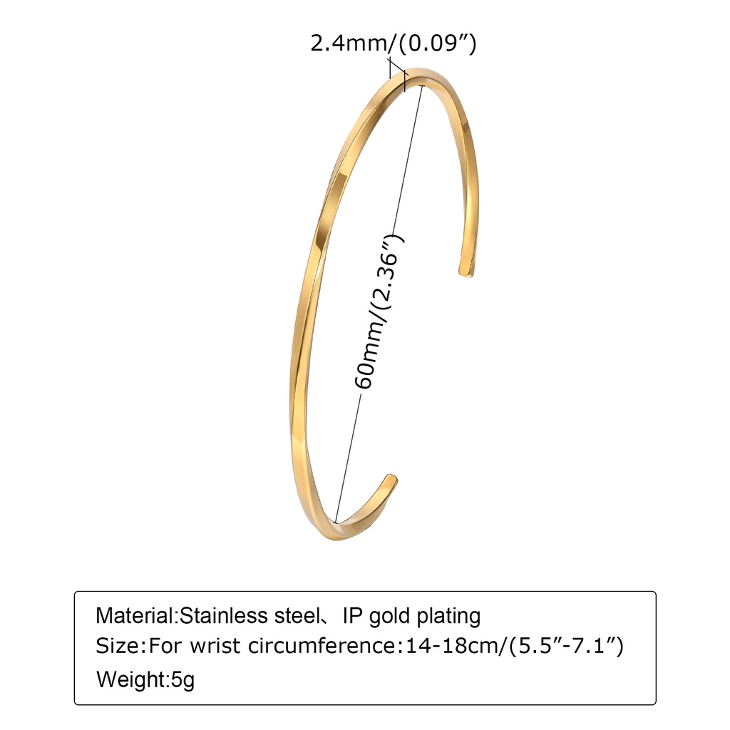 Vnox Mobius Bangle Opening for Women , Pulseira De Aço Inoxidável 2.4MM Metal