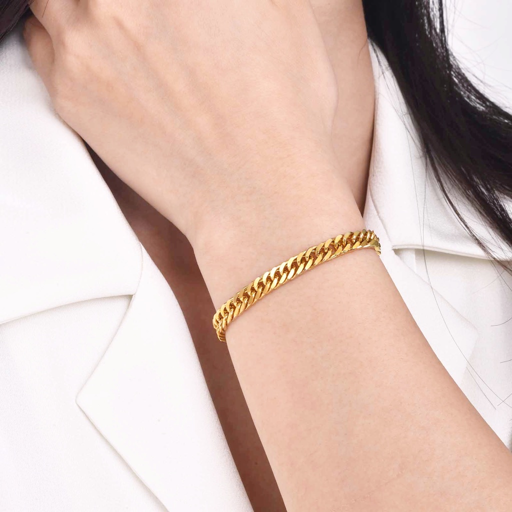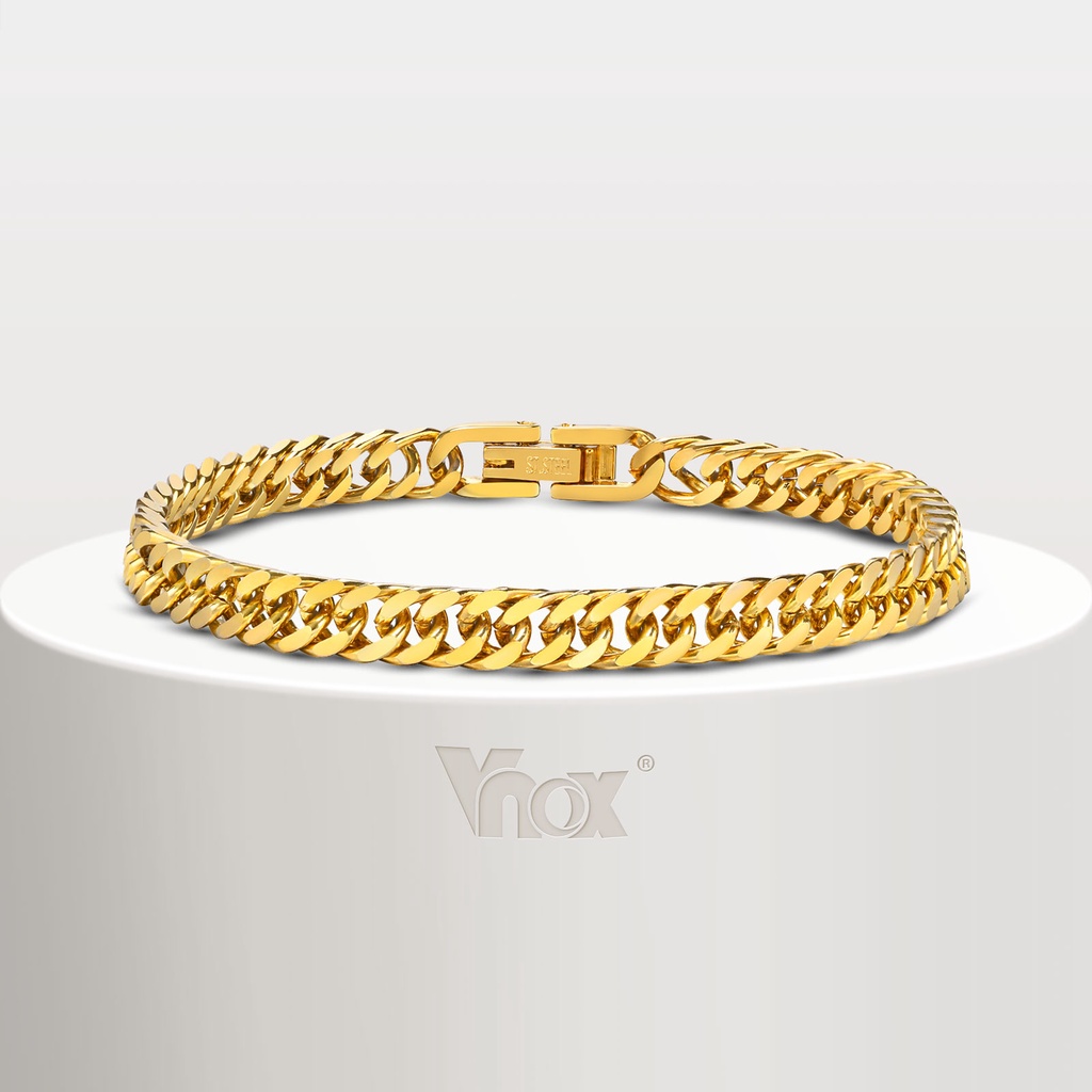Pulseira Cubana Vnox 18K Folheada A Ouro Para Menina Feminina , Elo Clássico De Corrente De Aço Inoxidável