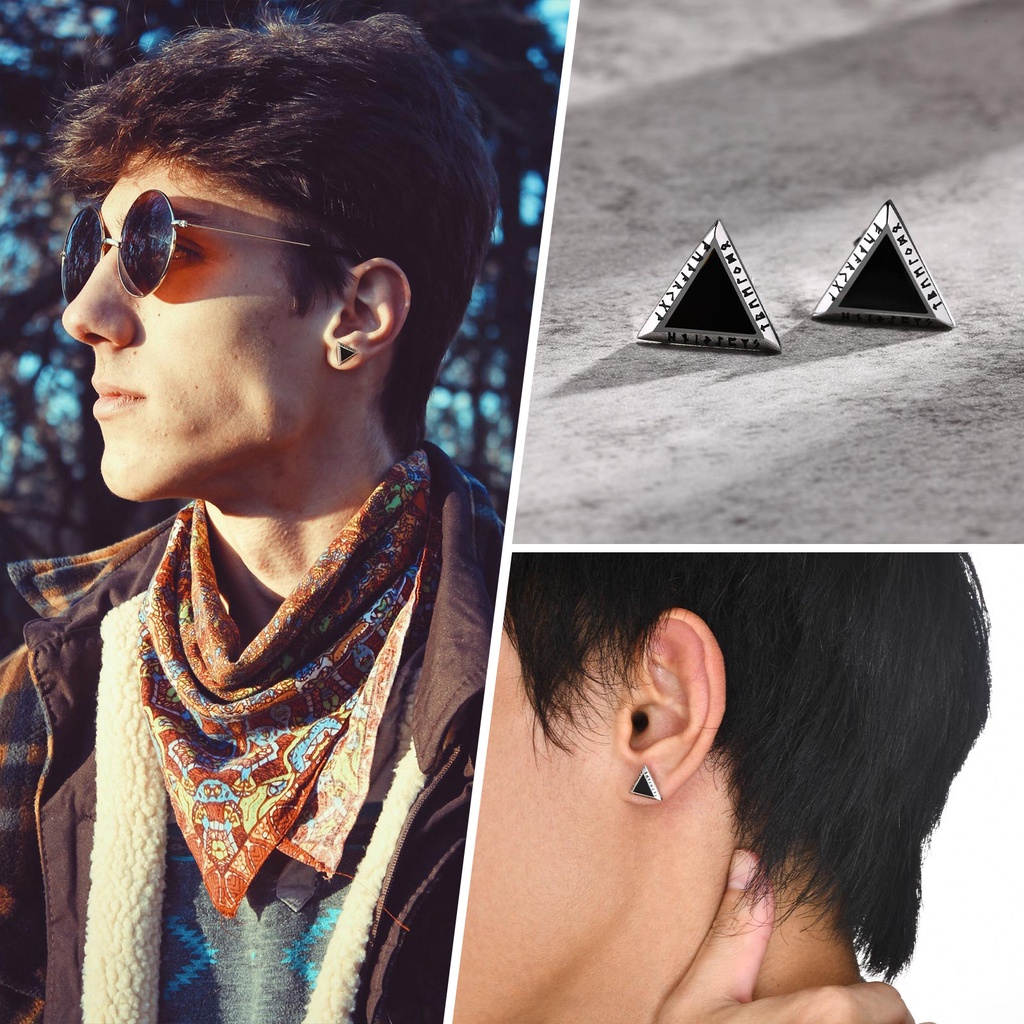 Brincos Pretos Masculinos De Aço Inoxidável Vnox , Todos Os Triangulares Leves De Símbolo Viking , Jóias