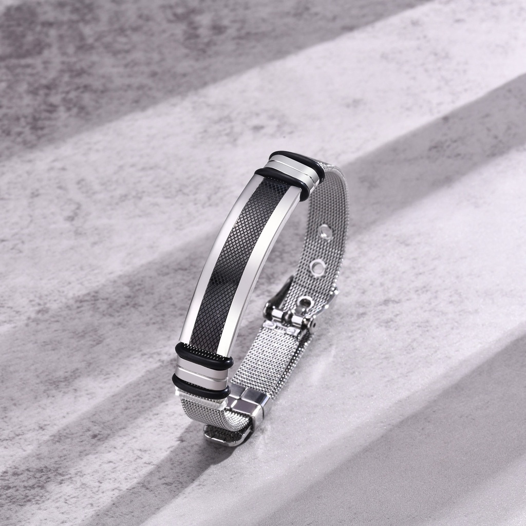 Vnox Fashion Casual Mesh Strap Pulseira De Malha Masculina , Aço Inoxidável Sem Desbotamento Etiqueta De Identificação De Menino Jóias De Pulso Ajustáveis