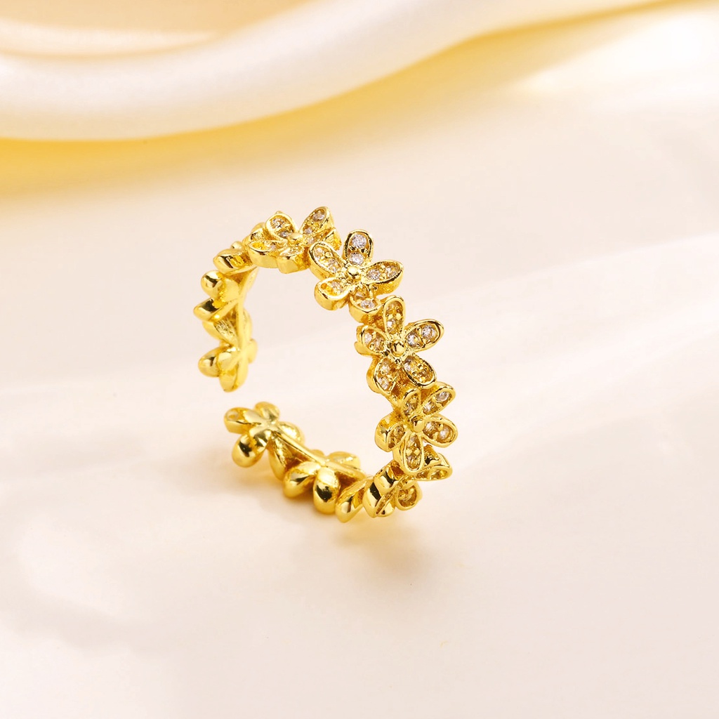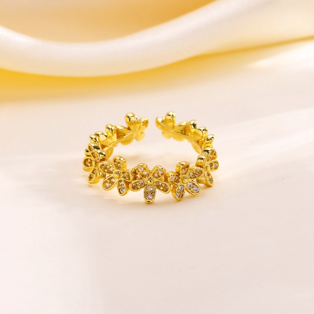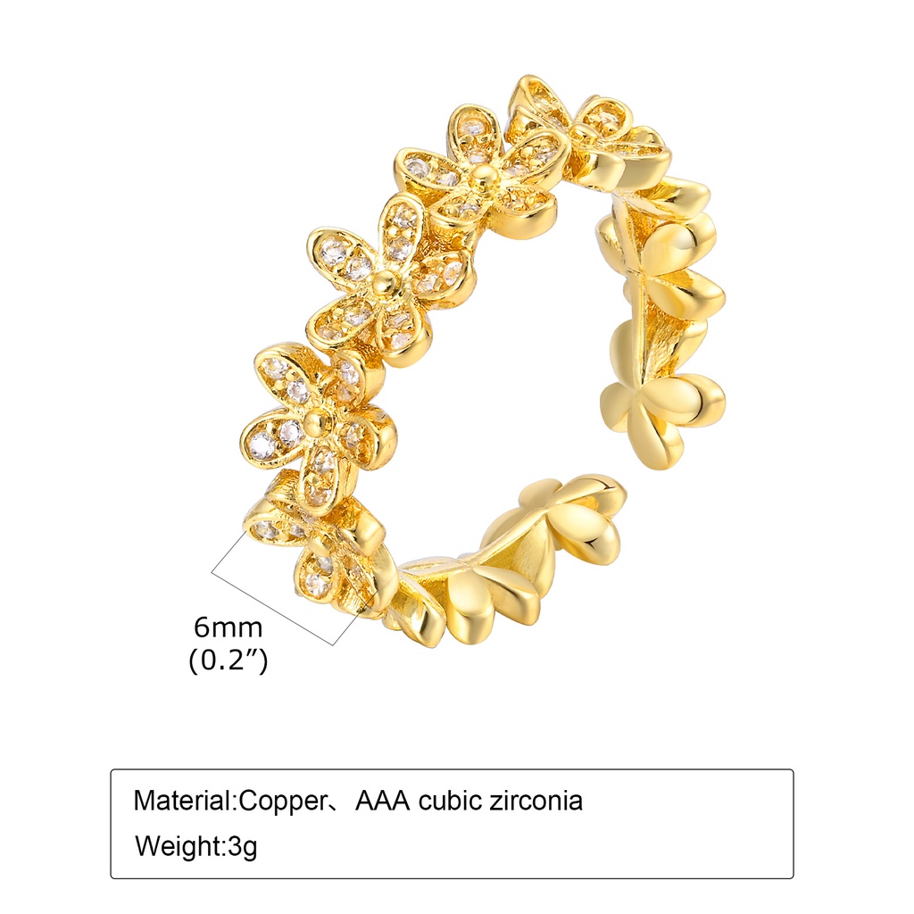 Vnox Zircon Cubic Flower Opening Ajustável Para Menina Feminina , Ouro 18K Anéis De Aço Inoxidável Acessórios Jóias