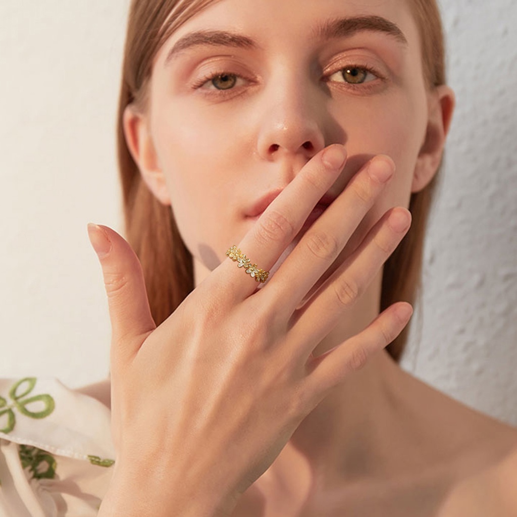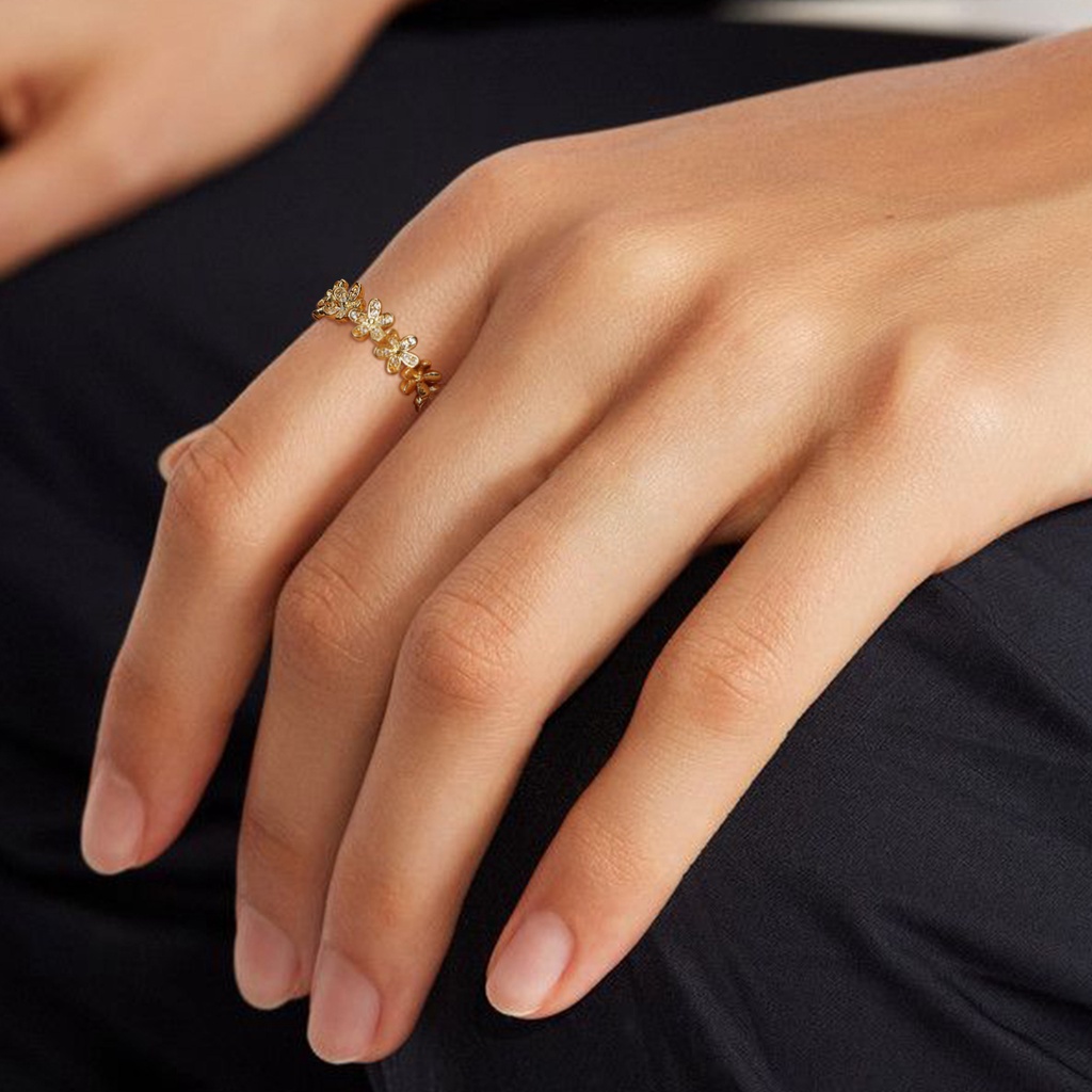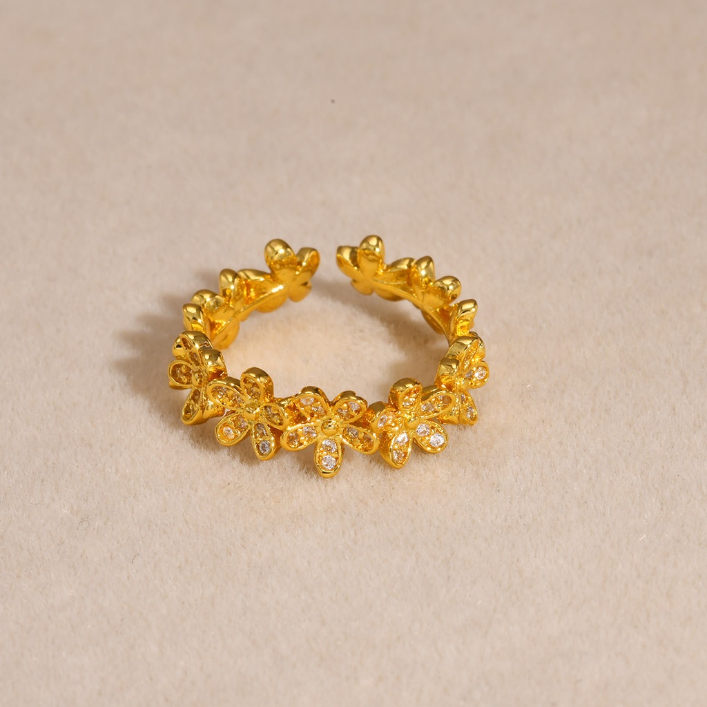 Vnox Zircon Cubic Flower Opening Ajustável Para Menina Feminina , Ouro 18K Anéis De Aço Inoxidável Acessórios Jóias