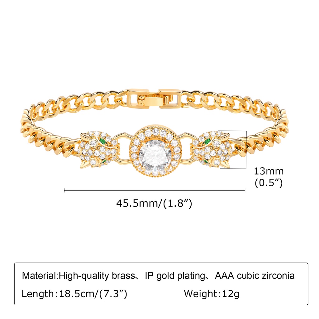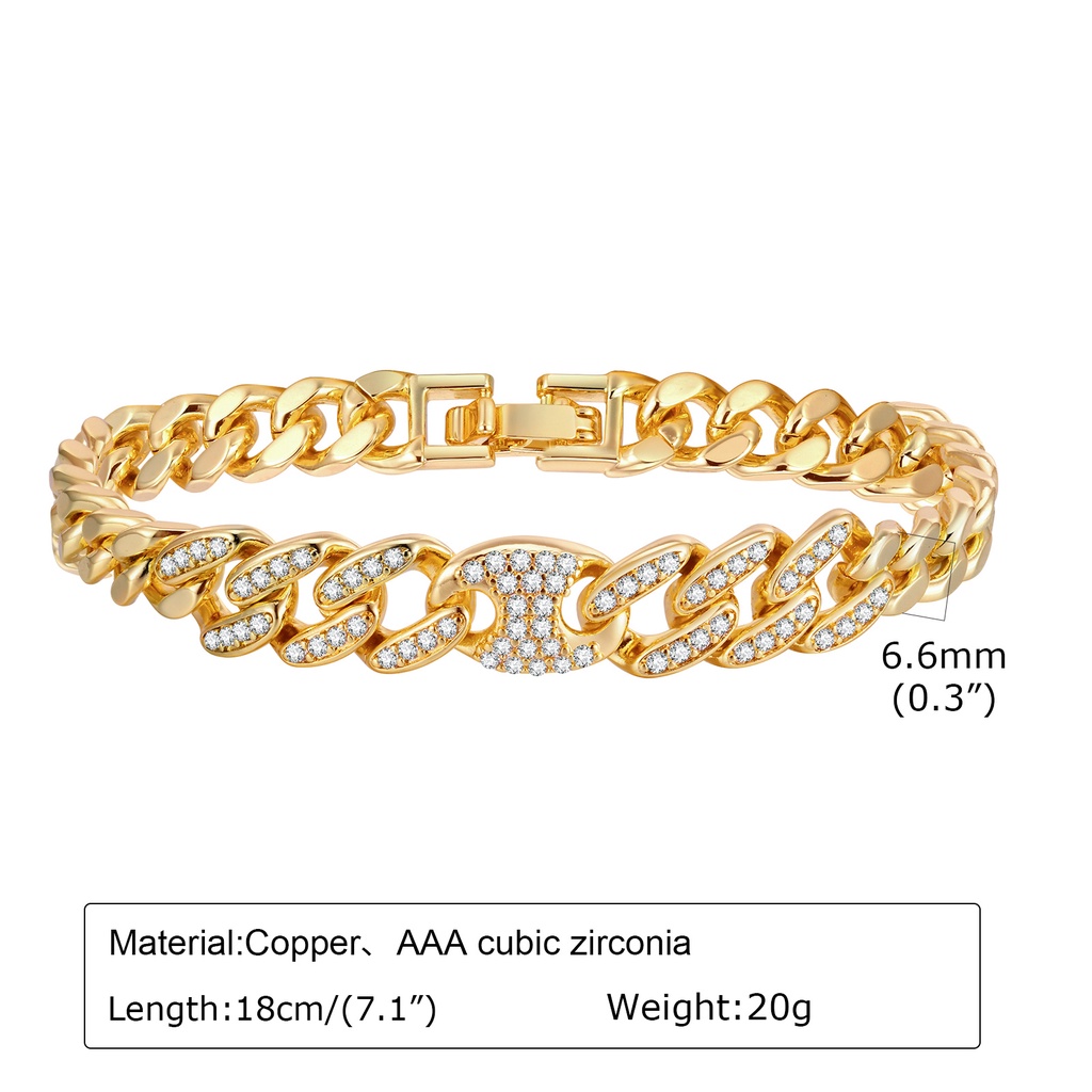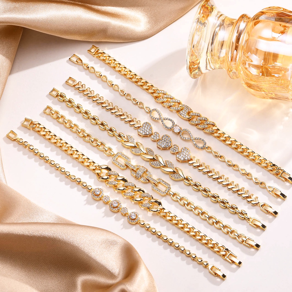 Vnox Cubic Zirconia Pulseira De Corrente De Clip De Papel Cubano Para Mulheres , 18k Casamento Com Contas De Ouro Brilhante Infinito