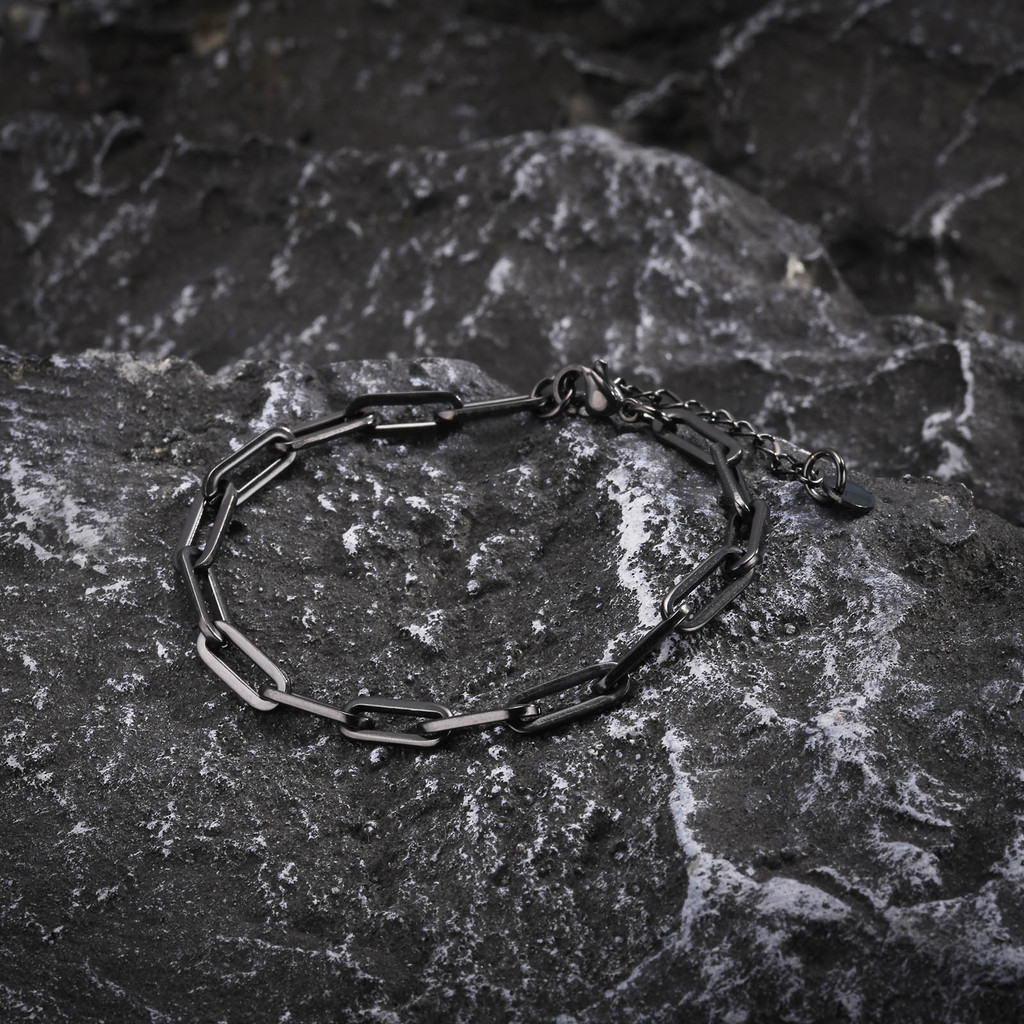 Vnox Fashionable E Minimalist Paper Clip Chain Men's Bracelet , Pulseira De Corrente Preta Ajustável De Aço Inoxidável , Jóias De Presente
