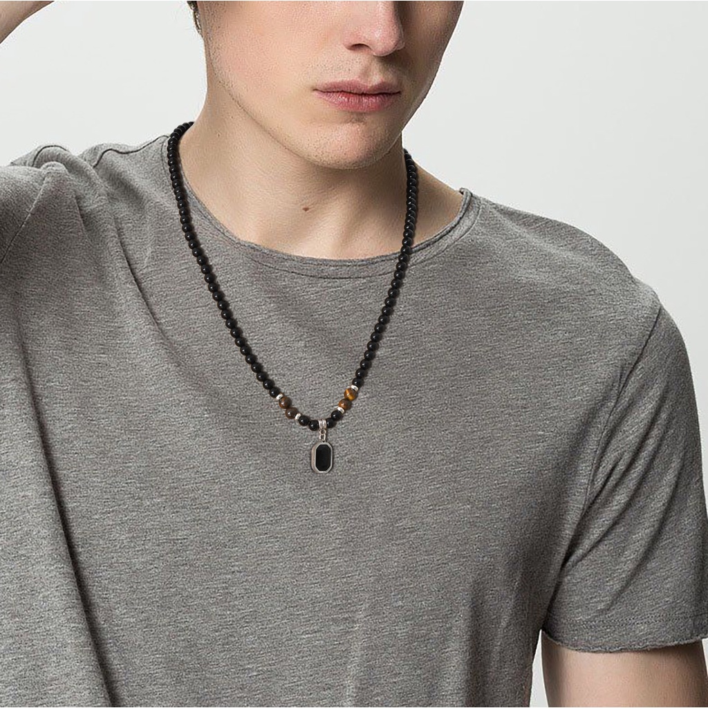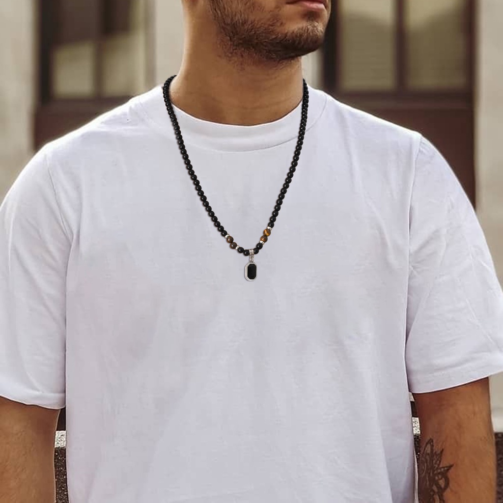 Vnox Geometric Square Men's Pendant , Colar De Zircônio De Contas Redondas De Acrílico Preto Presente De Jóias