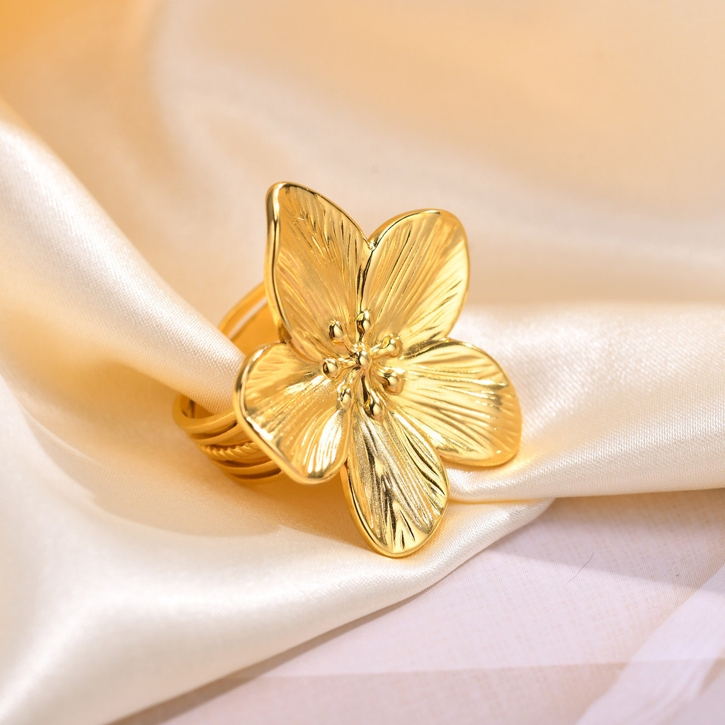 Vnox Flower Anel De Abertura Para Menina Feminina , 18K Gold Big Ring Jóias De Festa Em Aço Inoxidável