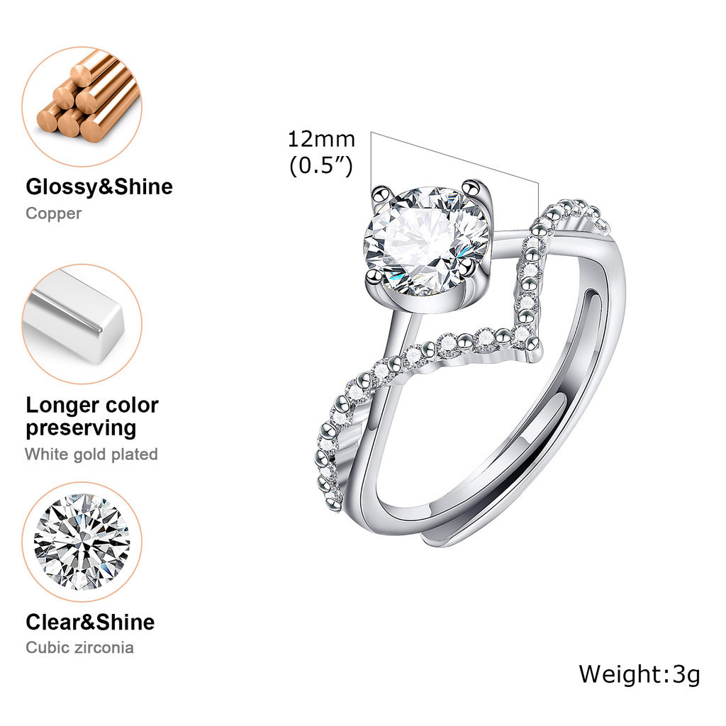 Vnox Anel De Aço Mulher material De Cobre Zircônio Ajustável Da Moda Jóias De Amor Incrustado anel feminino aliança de prata