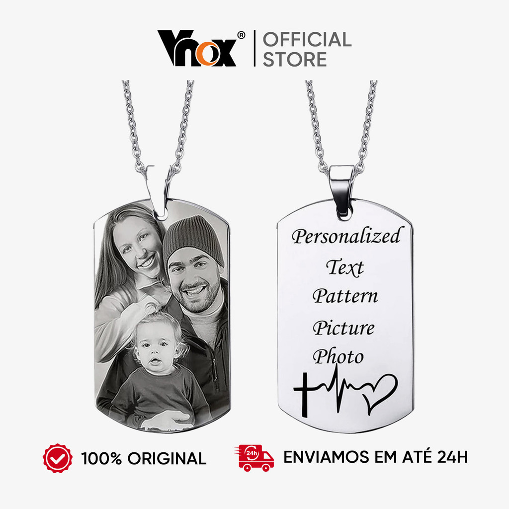 VNOX Nome Personalizado Colar Masculino Personalizado Com Foto Texto Aço Inoxidável Tag Comemorativo Para Casal Presente