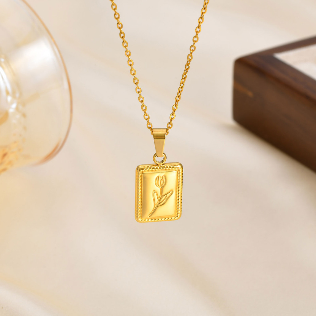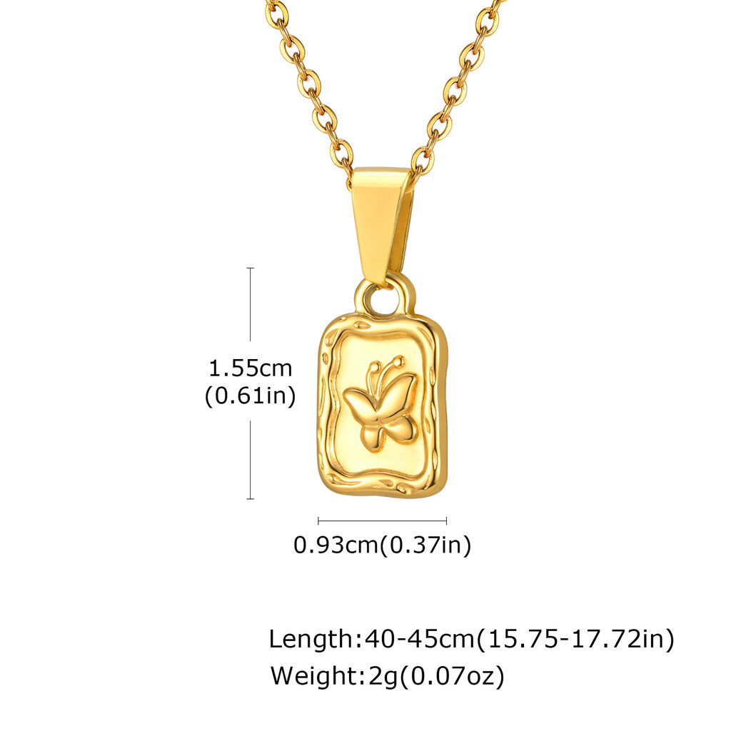 Vnox 18k Ouro Vintage Borboleta/Tulipa Colar Quadrado Para Mulheres Hipoalergênico De Aço Inoxidável Joias