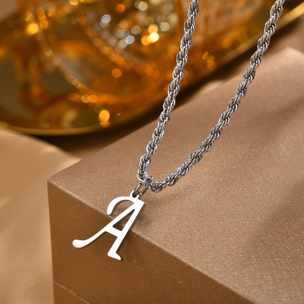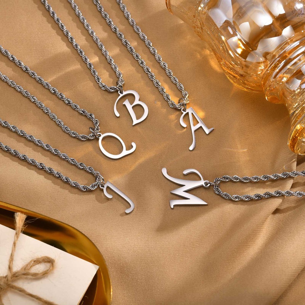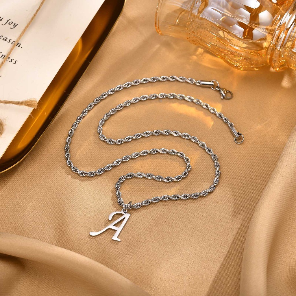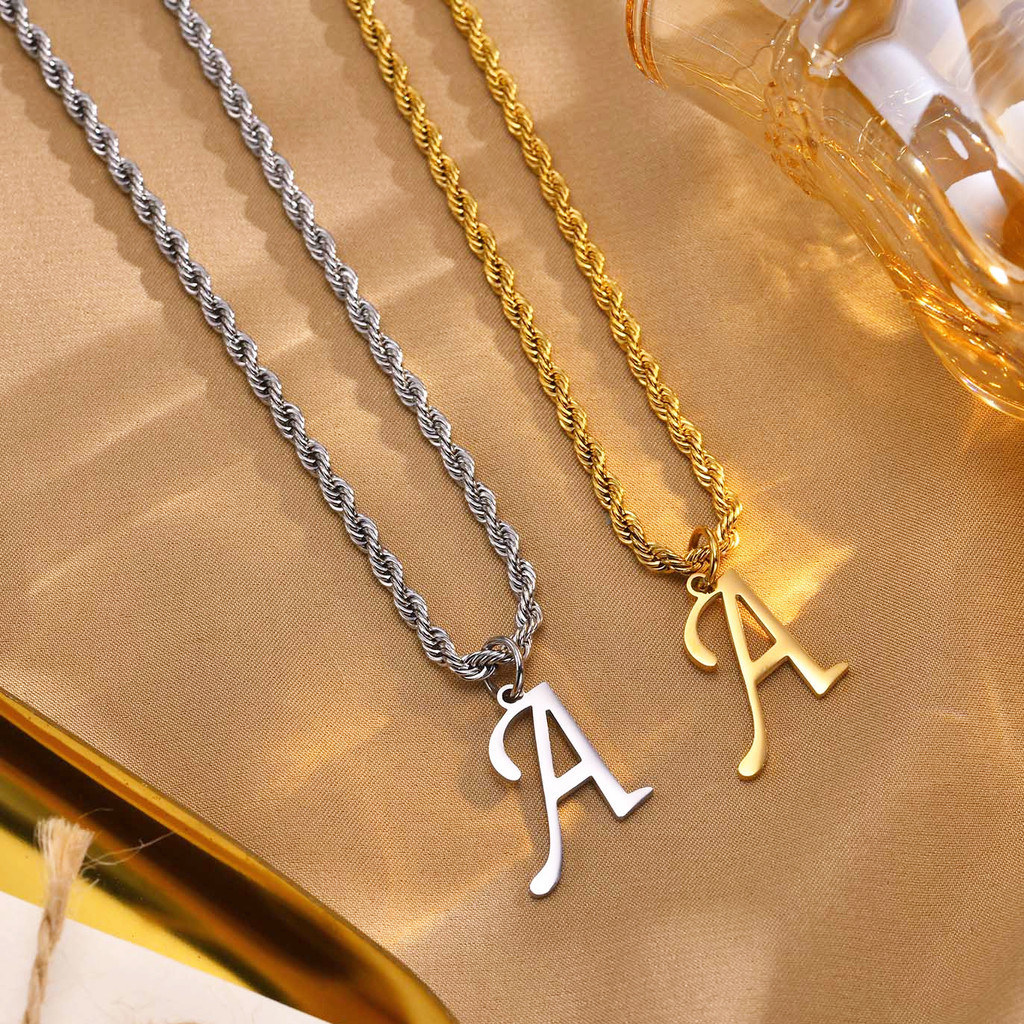 Vnox Clássico A-Z Carta Pingente Colar Para Mulher Homem , Simples De Corrente De Corda Torcida De Aço Inoxidável Presente De Jóias