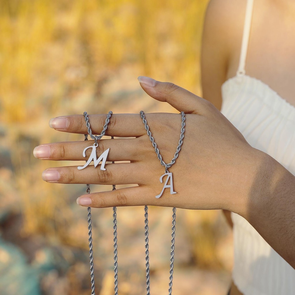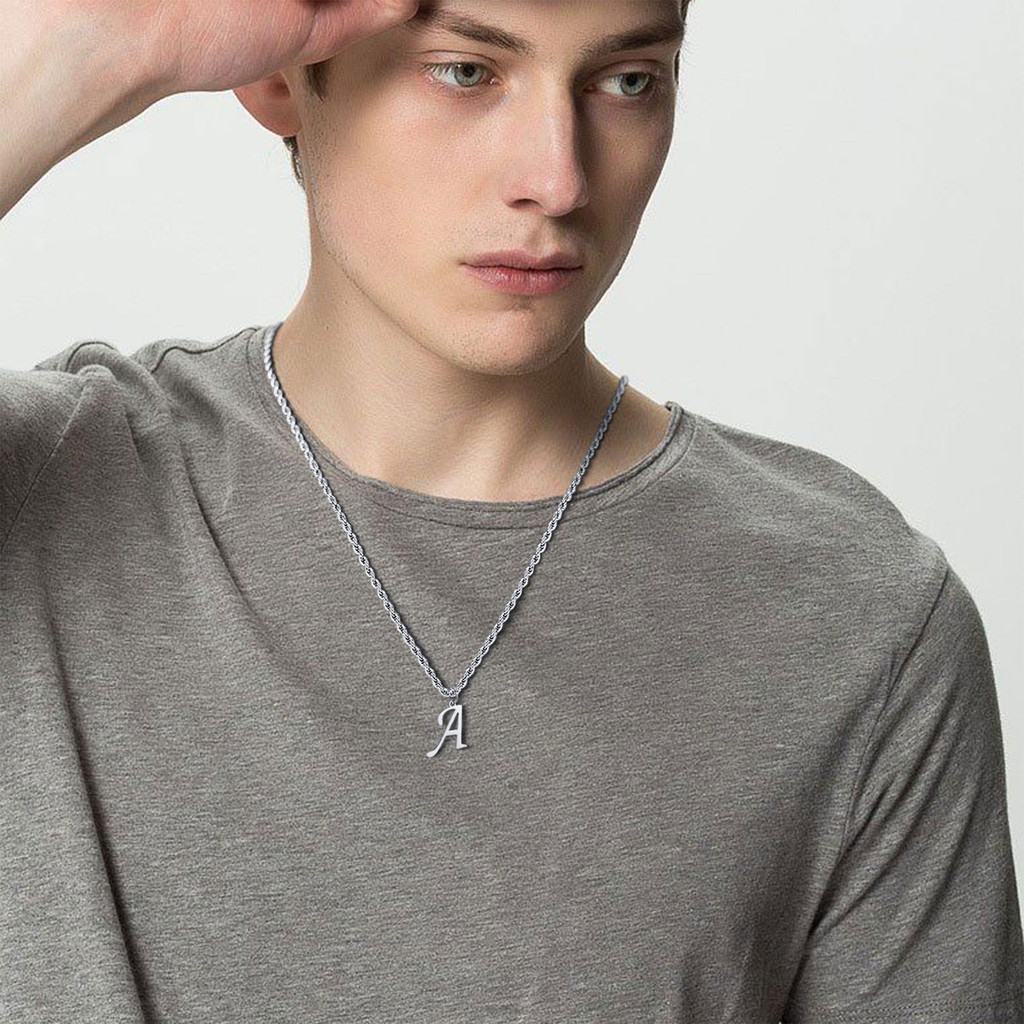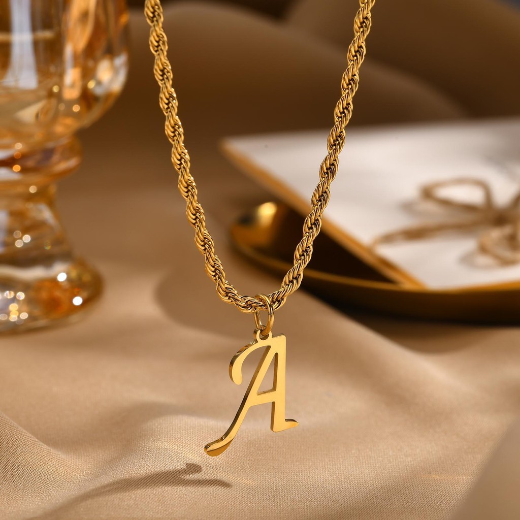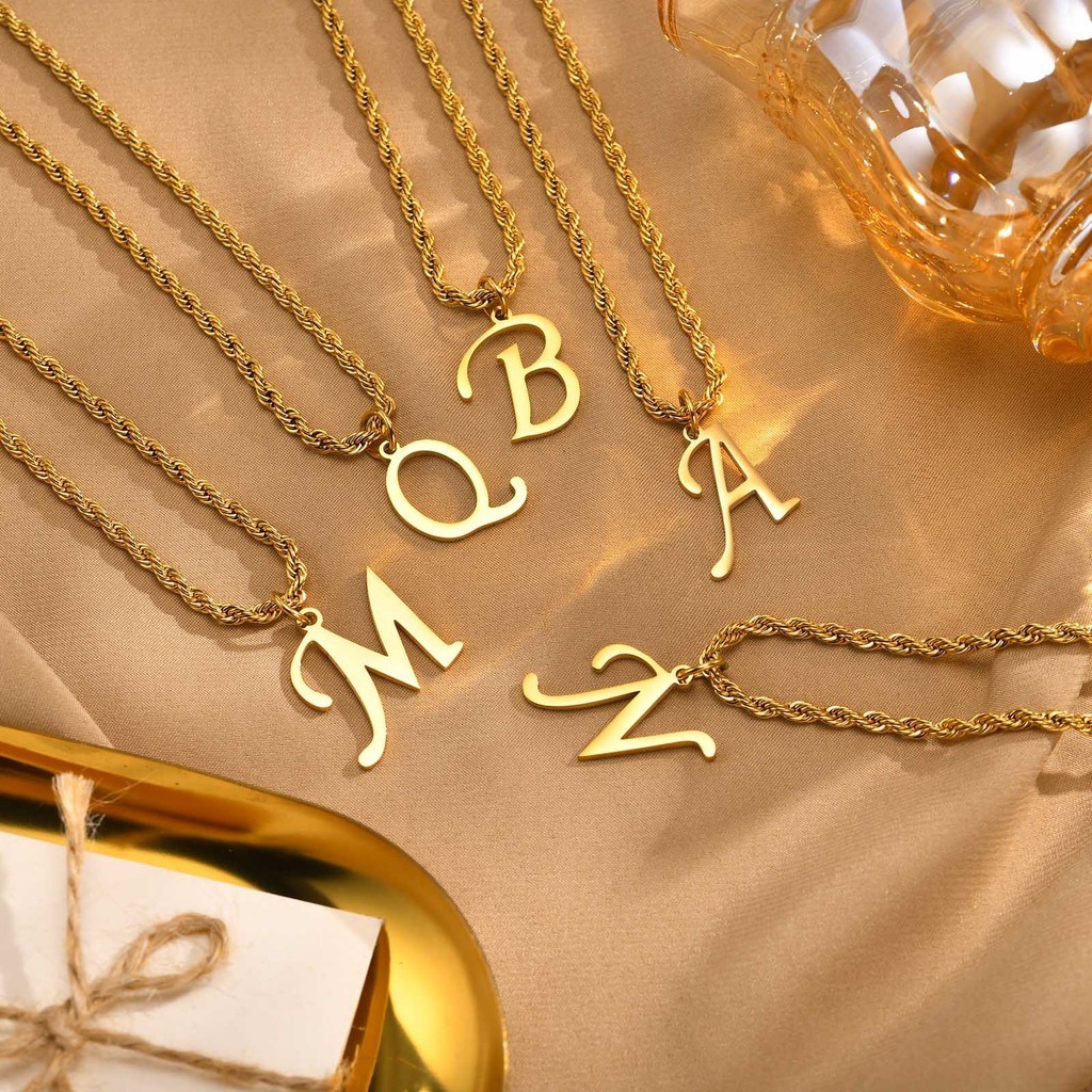 Vnox Clássico A-Z Carta Pingente Colar Para Mulher Homem , Simples De Corrente De Corda Torcida De Aço Inoxidável Presente De Jóias