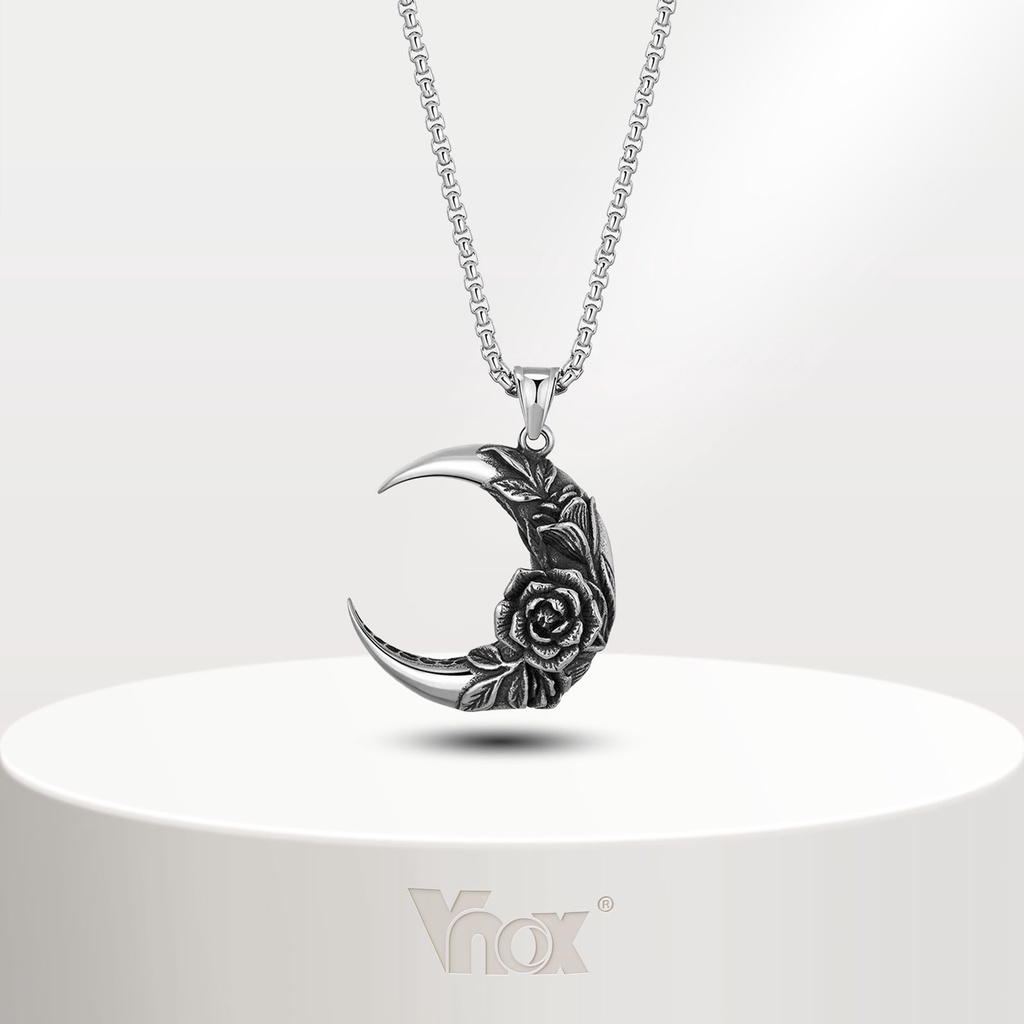 Colar De Pedra Punk Rock Gótico Masculino Vnox , Pingente De Prata Da Lua Rosa De Aço Inoxidável , Jóias Para Meninos