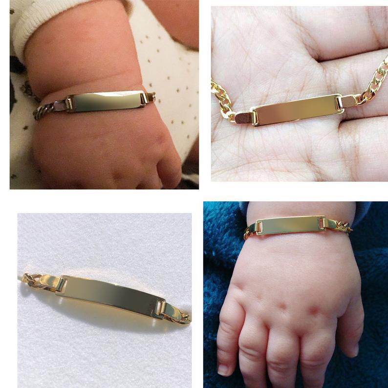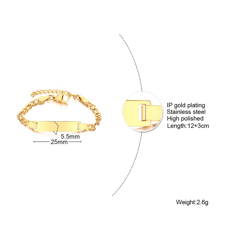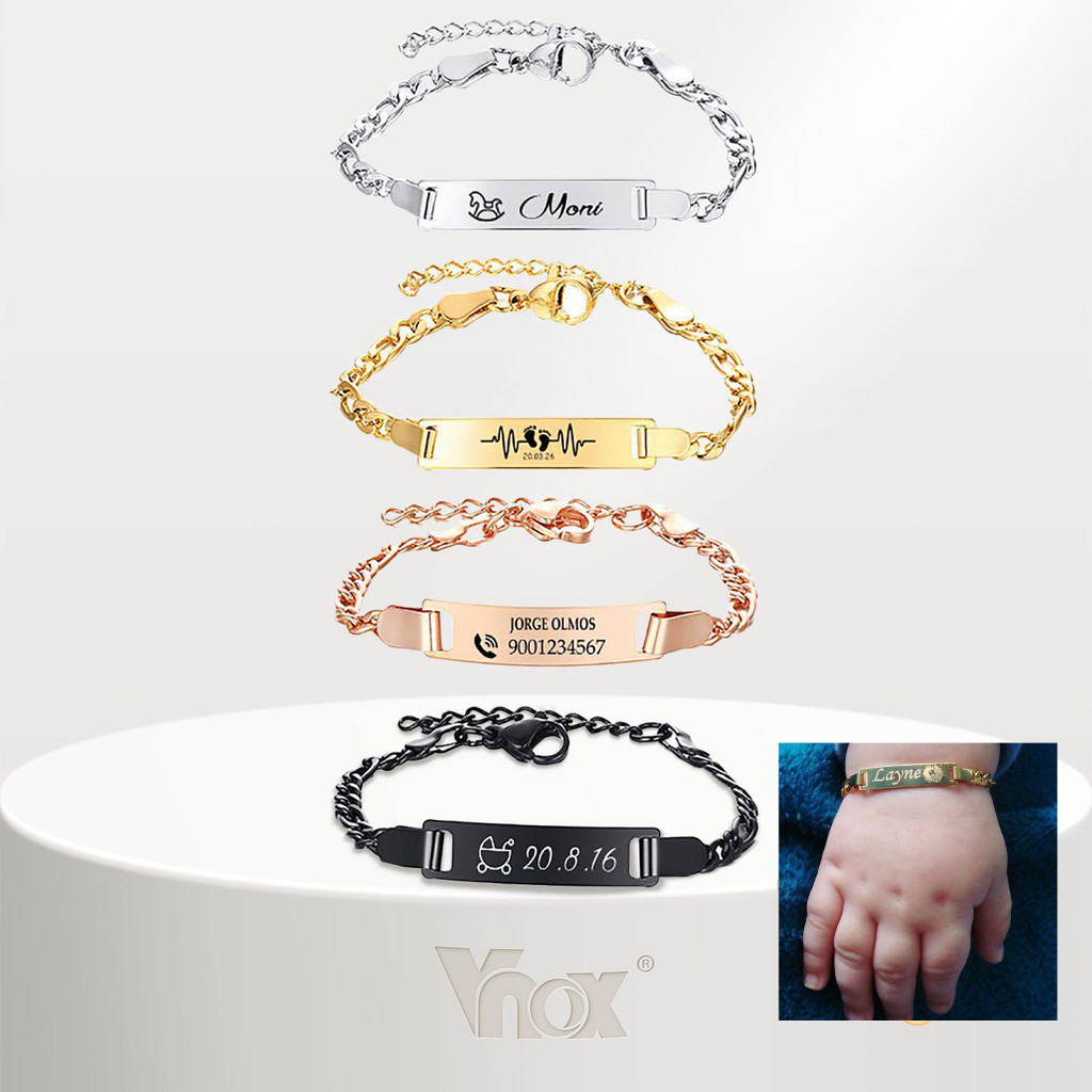 Vnox Personalizado Nome Do Bebê Gravado Pulseira De Aço Inoxidável Criança Banhado A Ouro ID Menina Menino Presente Aniv