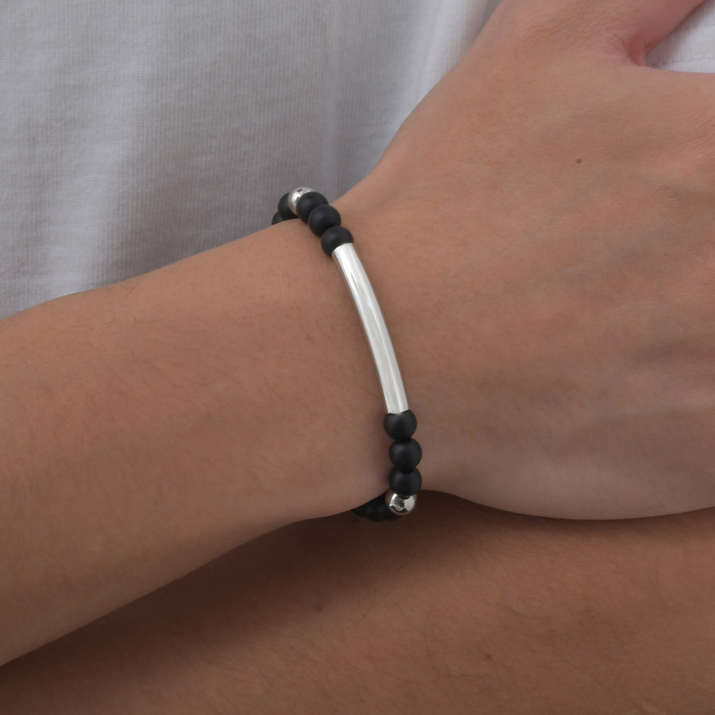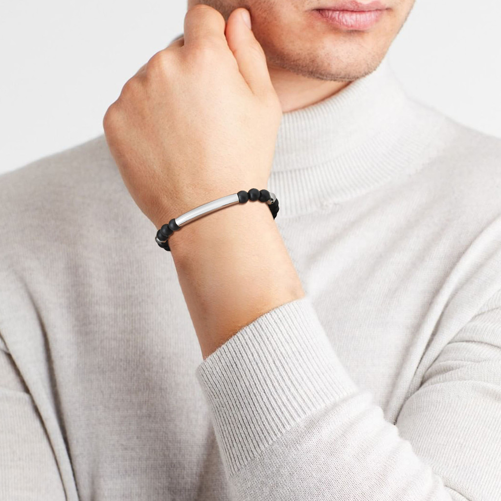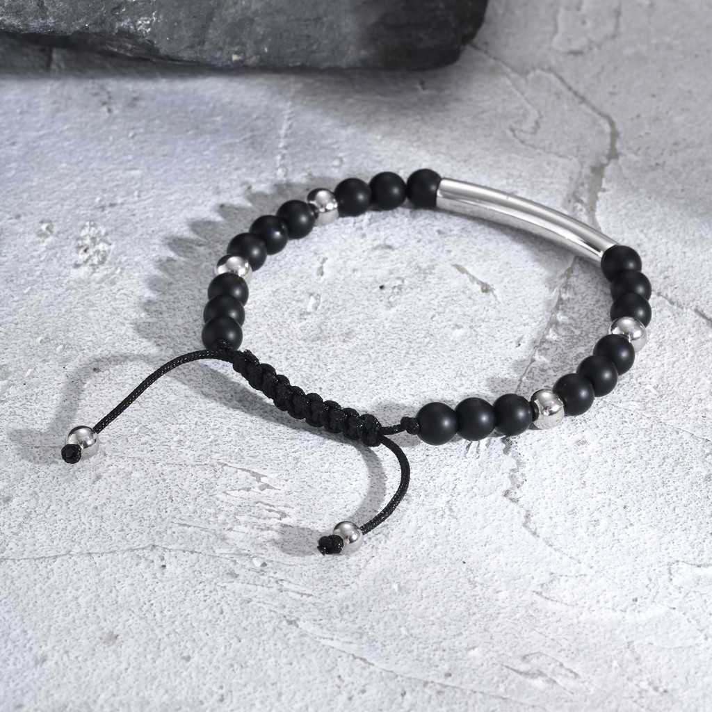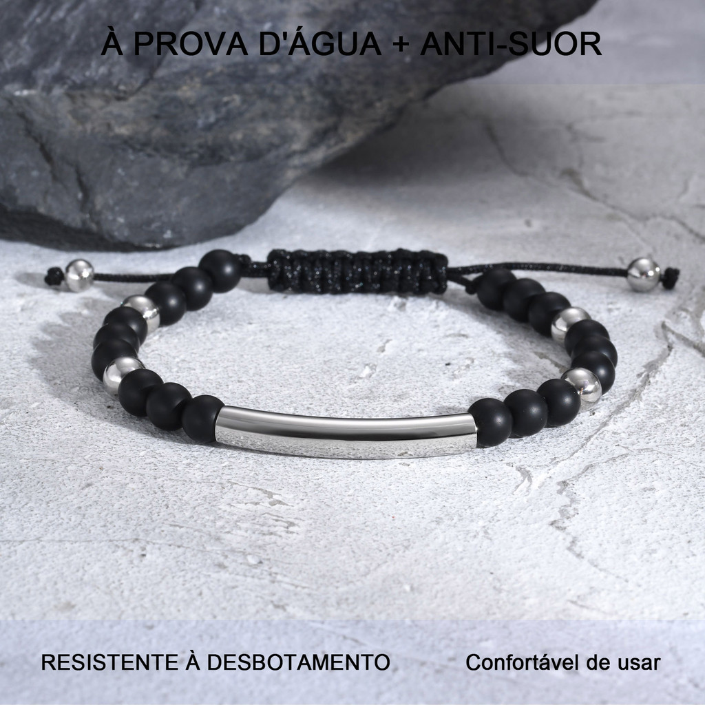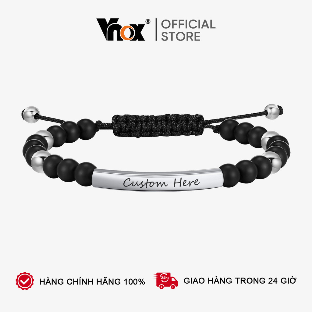 Pulseira De Aço Inoxidável Com Nome Personalizado Grátis Vnox Para Homens , Pulseiras De Contas De Pedras Preciosas Pret