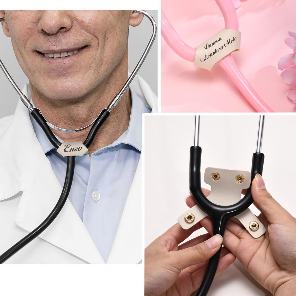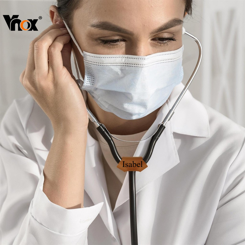 Pingente De Reconhecimento De Estetoscópio Personalizado Gratuito Vnox , Couro Com Nome Destacável , Acessórios De Aço I