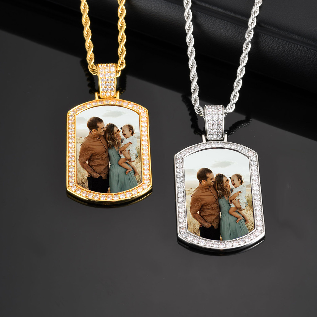 Colar Com Imagem Personalizada Vnox , Foto Para Homens E Mulheres , Pingente De Zircônia Banhado A Ouro 18K , Presente D