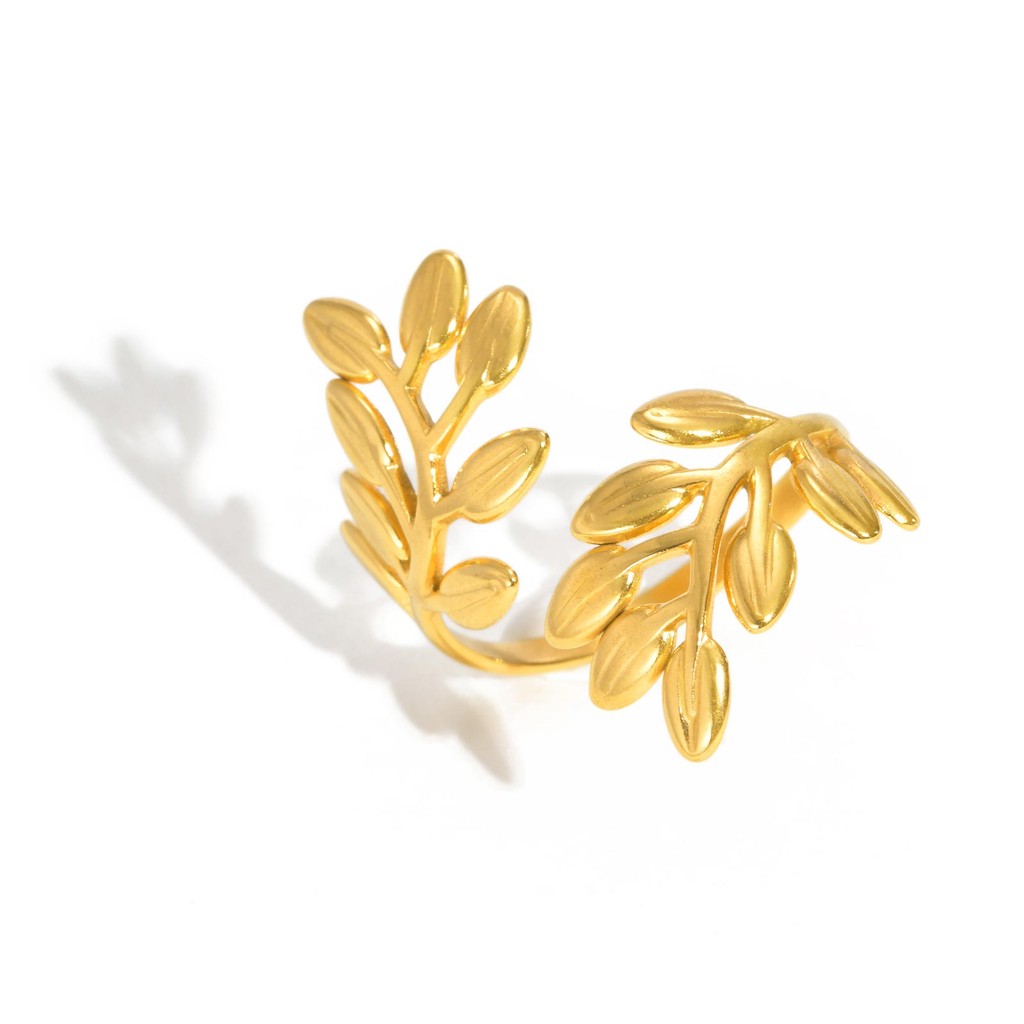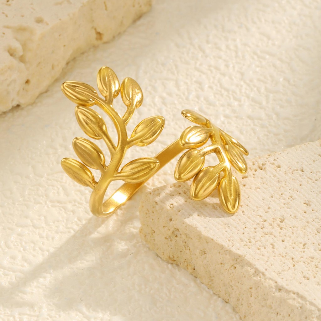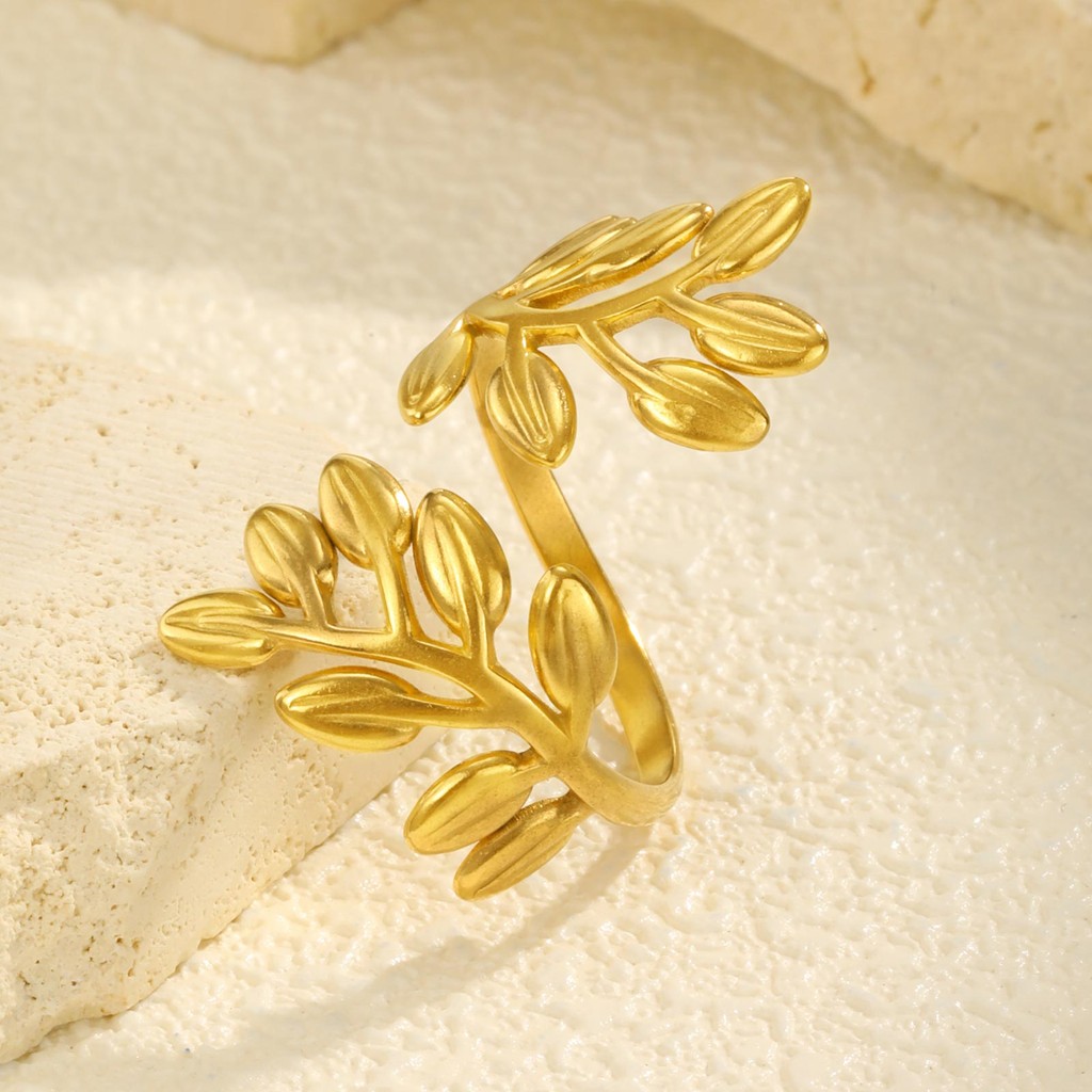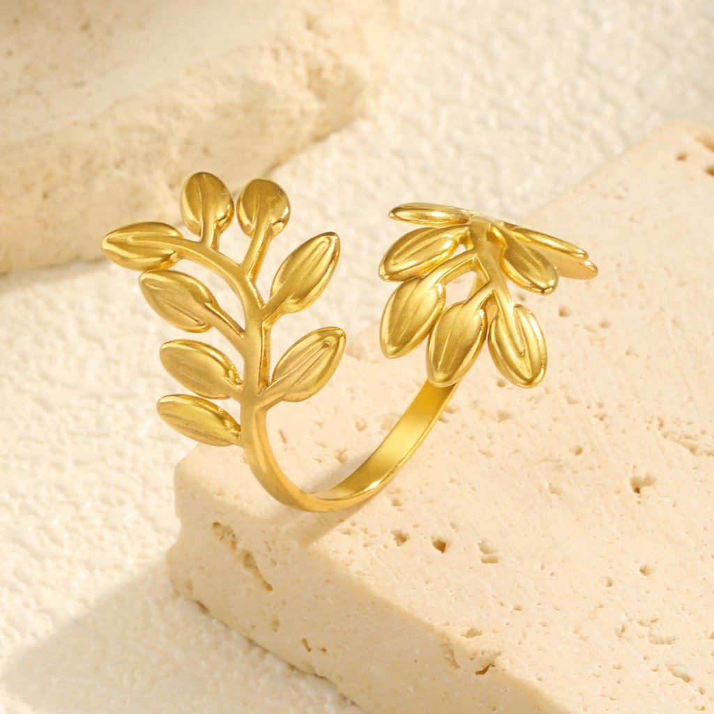 Anel De Abertura De Folha Vnox Para Mulheres , Dourado De Aço Inoxidável Não Manchado E Hipoalergênico , Presente De Joi