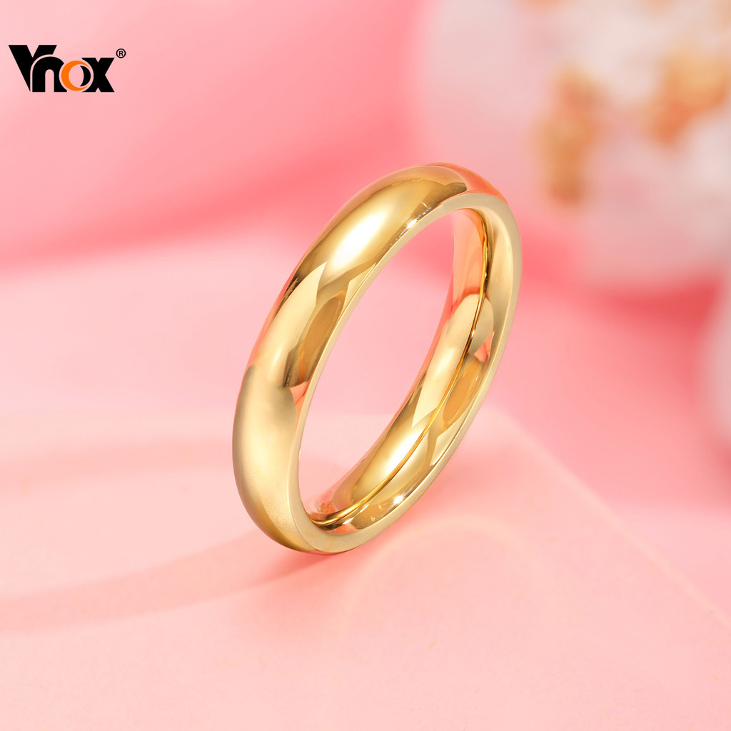 Anel De Aço Inoxidável Vnox 4mm , Cúpula Lisa , Casamento Altamente Polido Dourado Não Manchado , Presente De Joias Da M