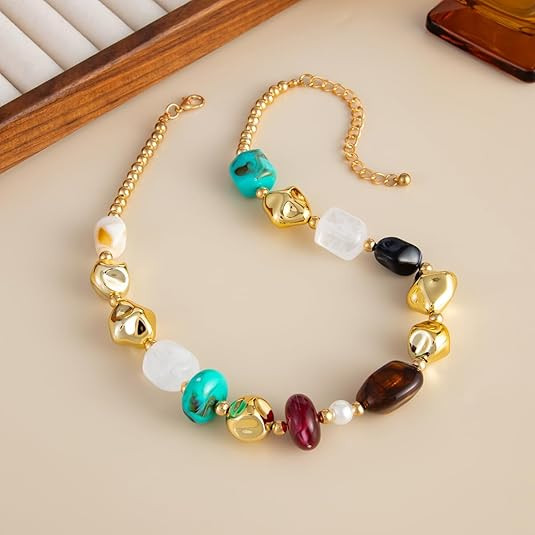 Vnox Robusto Acrílico Frisado Colar Para Mulheres Colorido Resina Acrílica Gargantilha Grandes Contas Redondas Jóias