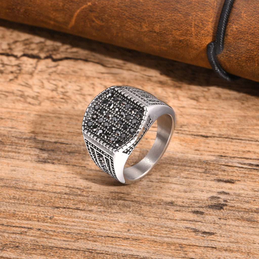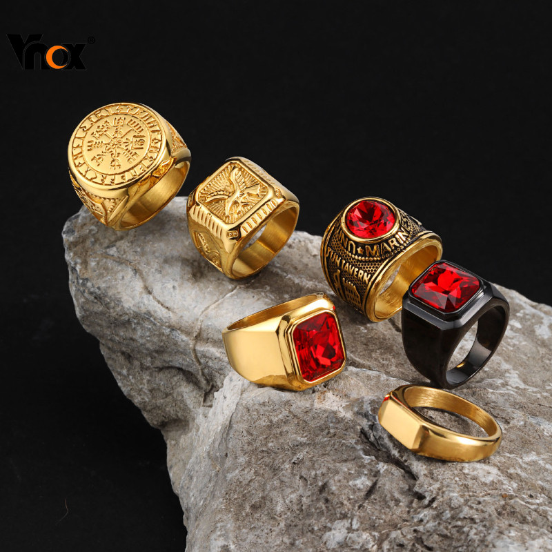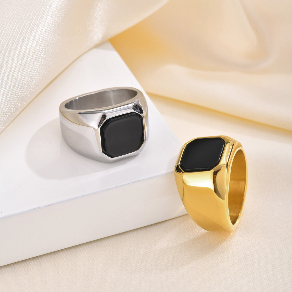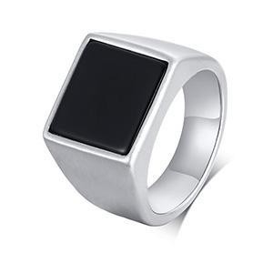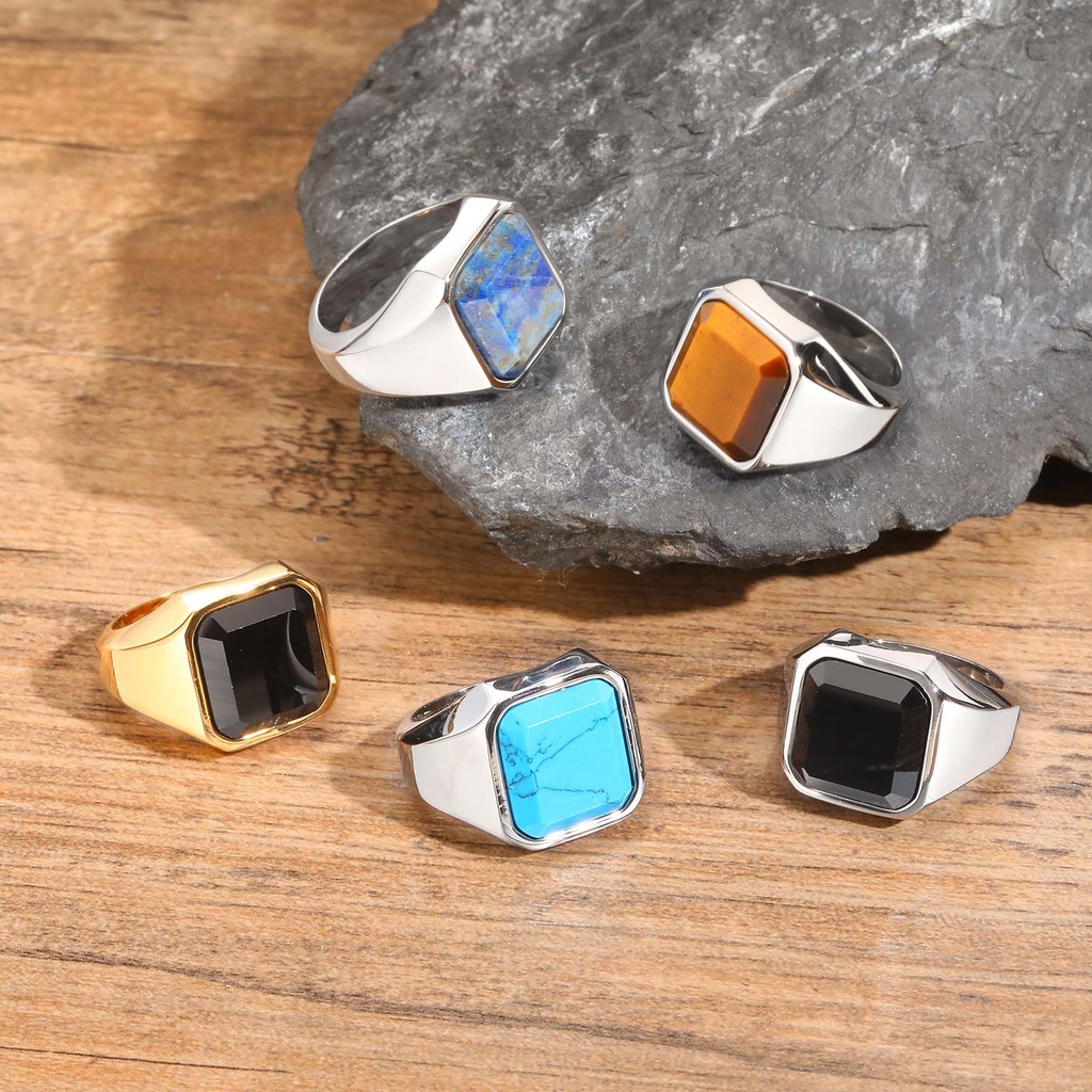 Vnox Conjunto De Anéis Redondos De Ágata De Pedra Natural Quadrada De Aço Inoxidável Para Homens , Anel Punk De Dedo De