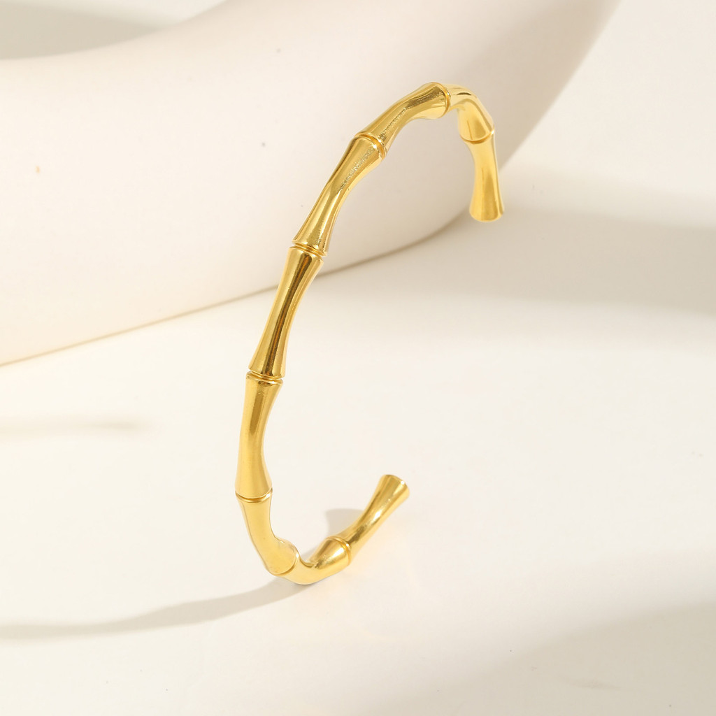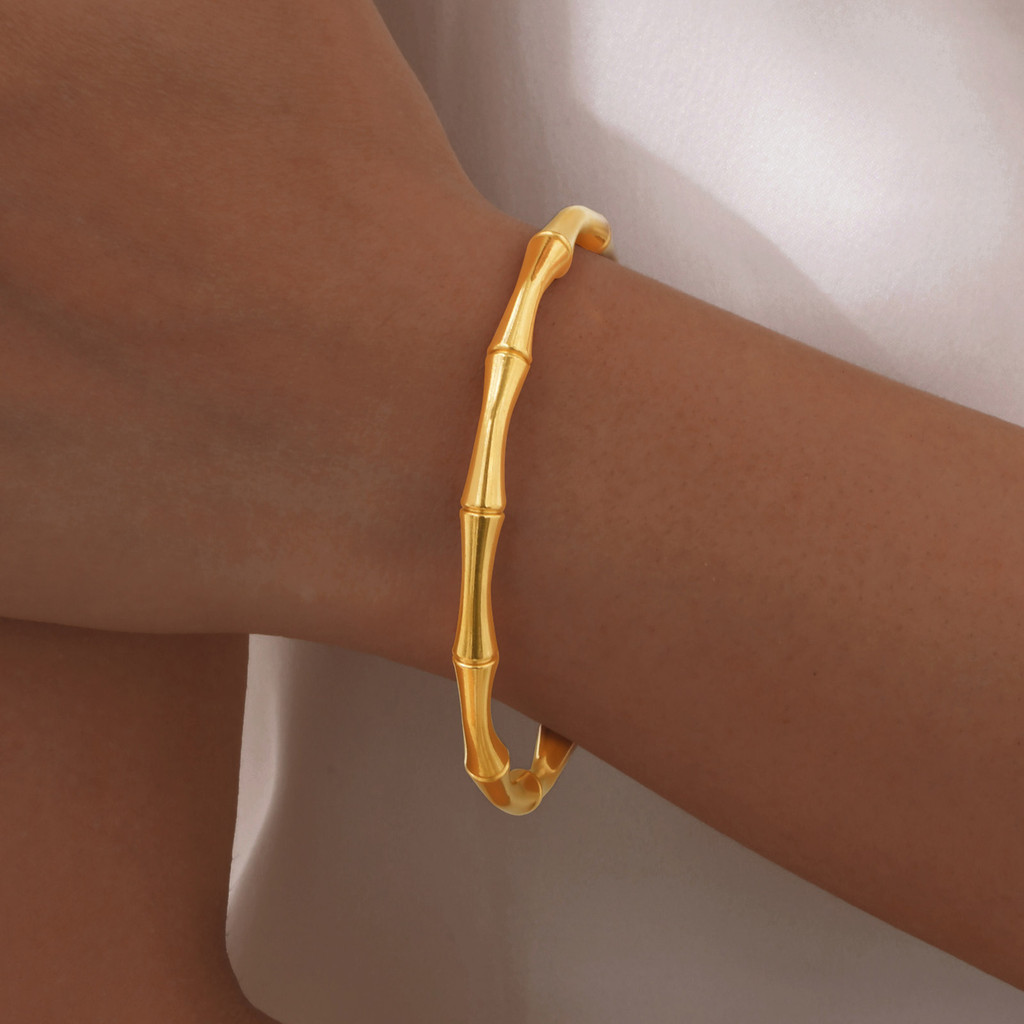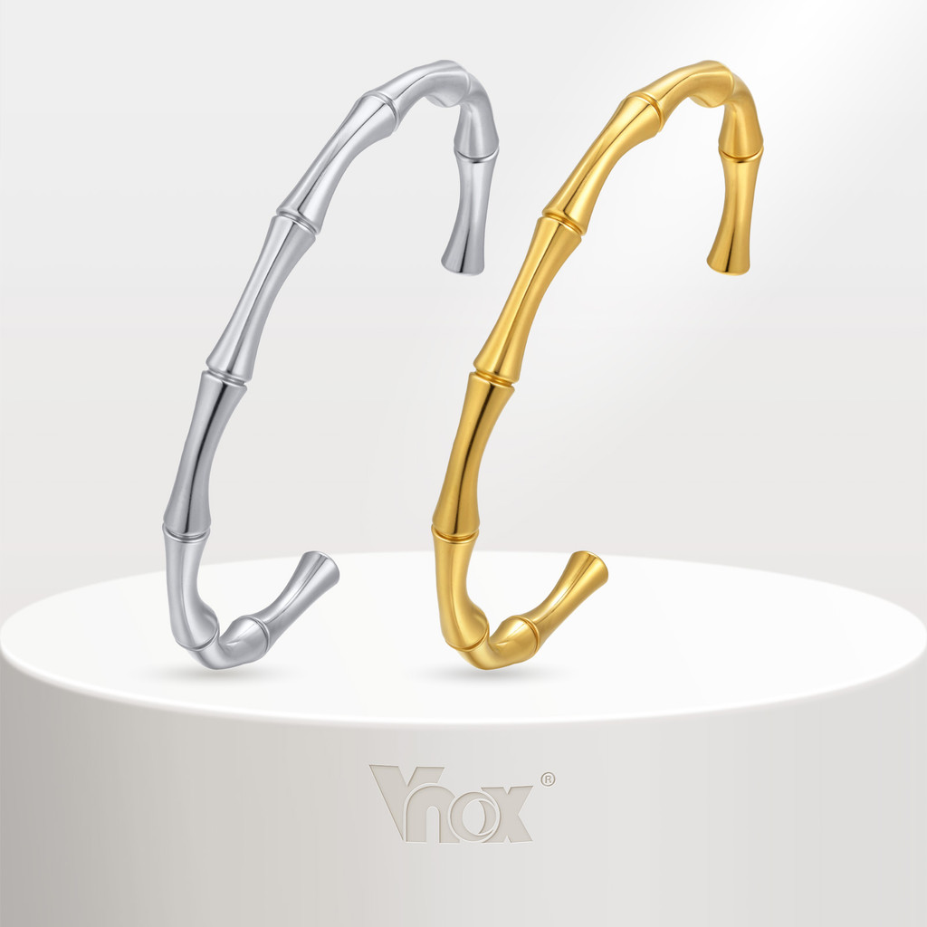 Pulseira De Bambu Em Forma De C Vnox Para Mulheres , Dourada De Aço Inoxidável Sem Manchas , Presente De Joias Da Moda