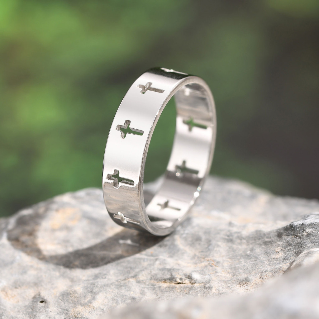 Anel De Cruz Oco Vnox Para Homens , Moda De Casal De Noivado De Jesus De Aço Inoxidável , Joia Presente De Dia Dos Namor