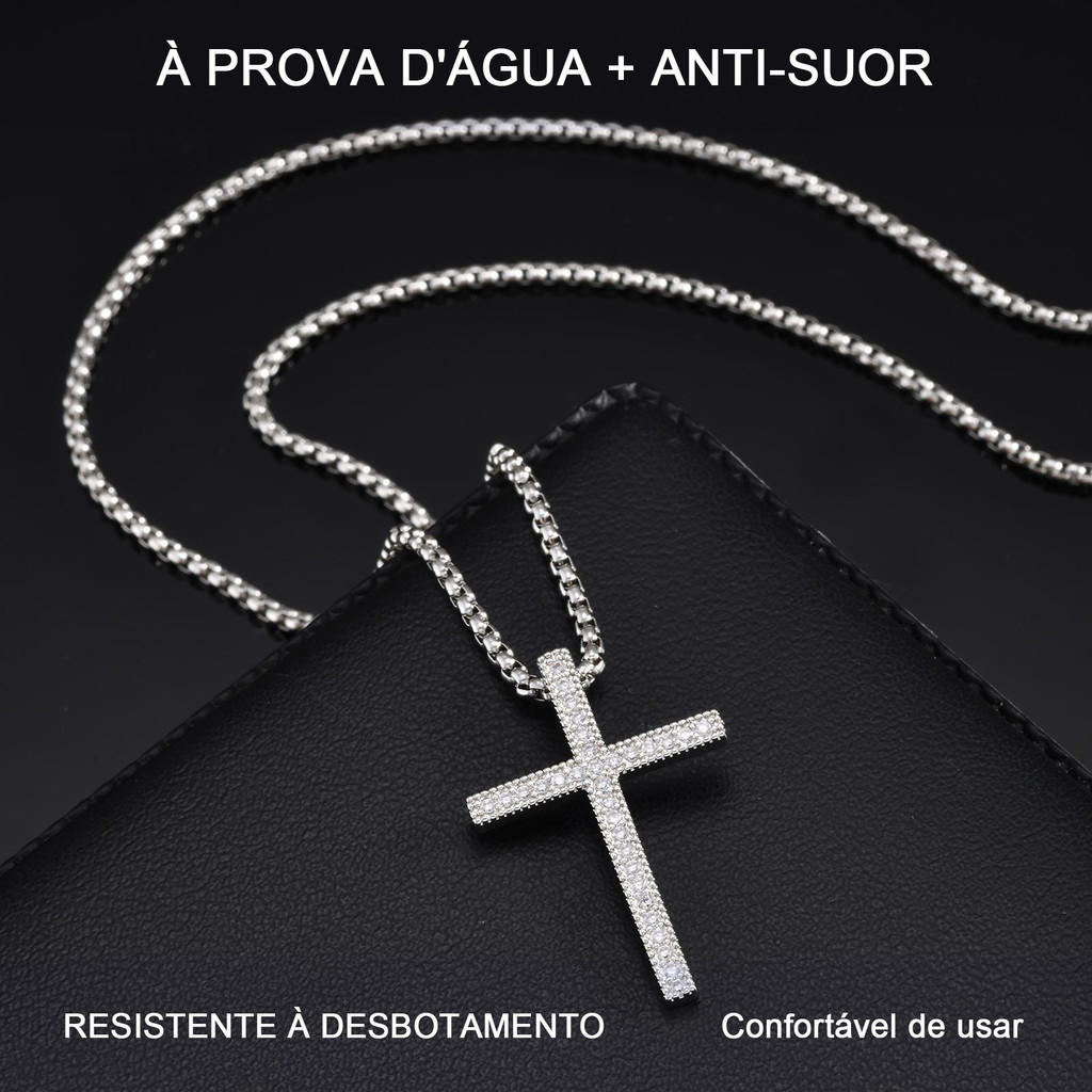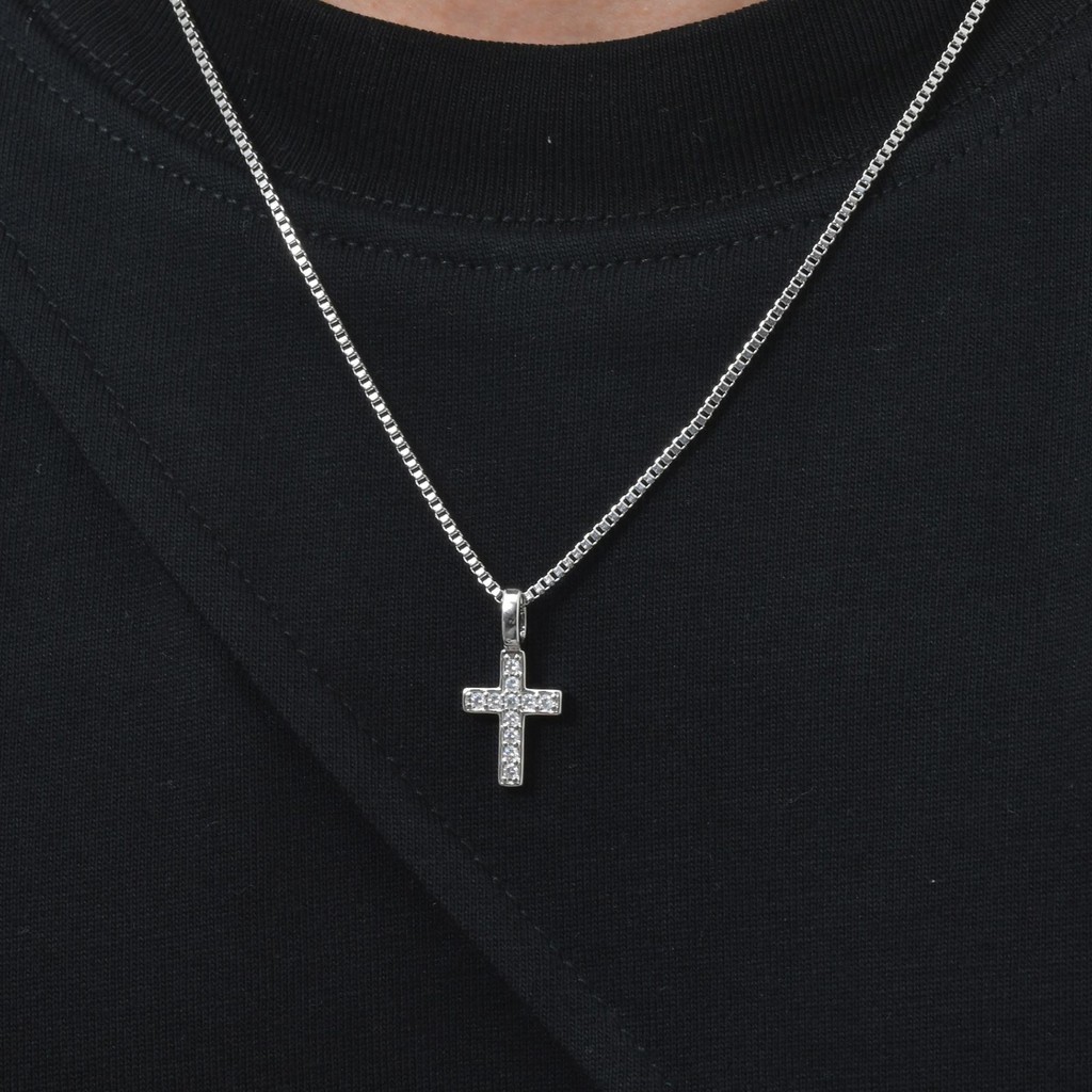 Colar Com Pingente De Cruz De Zircônia Branca Vnox Para Mulheres E Homens , Unissex Cor Prata CZ Brilhante Joias Finas P
