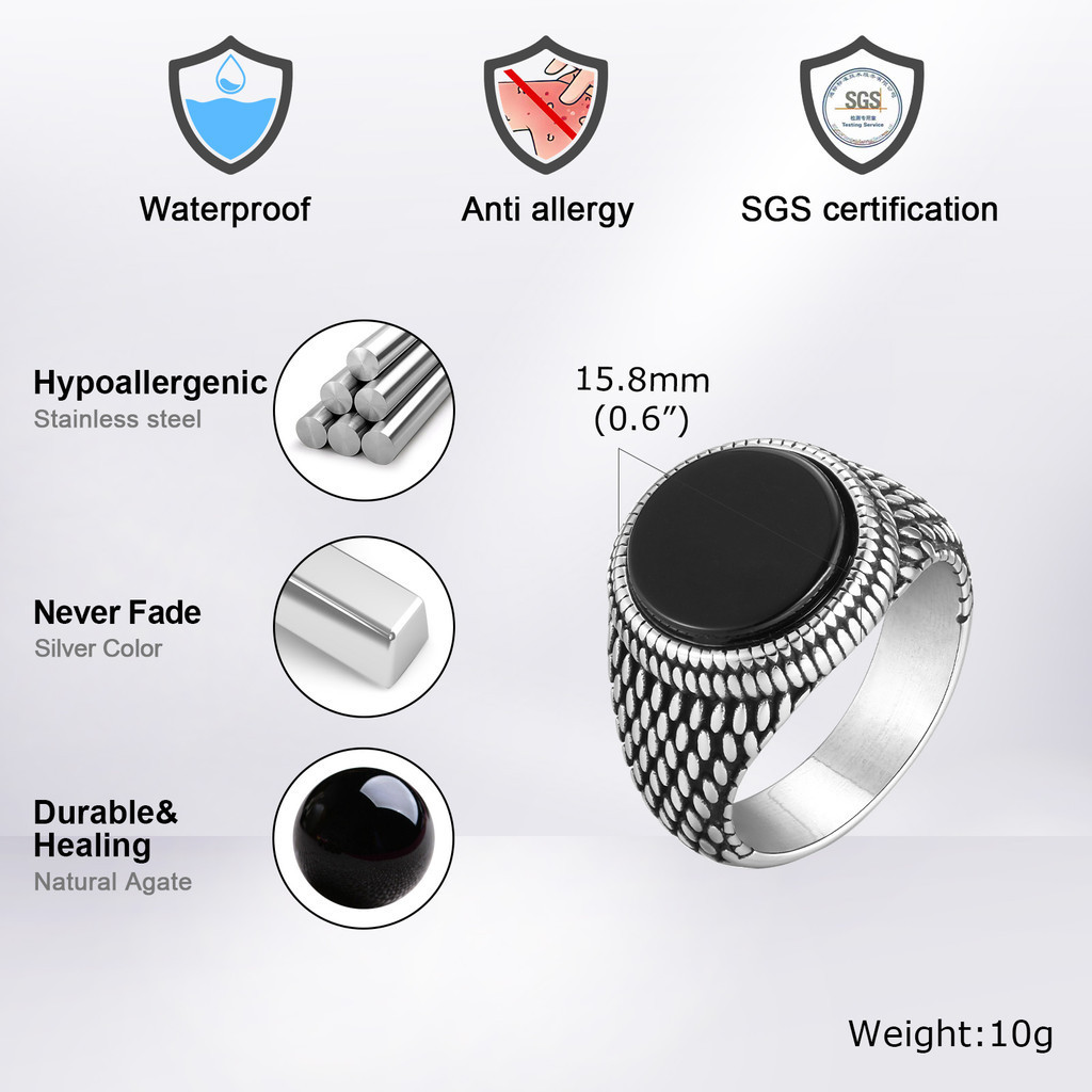 Vnox Anel De Aço Inoxidável Para Homens Padrão Redondo De Ágata Cor Punk Anéis De Moda Dedeira Masculina Acessórios Jóias Presentes