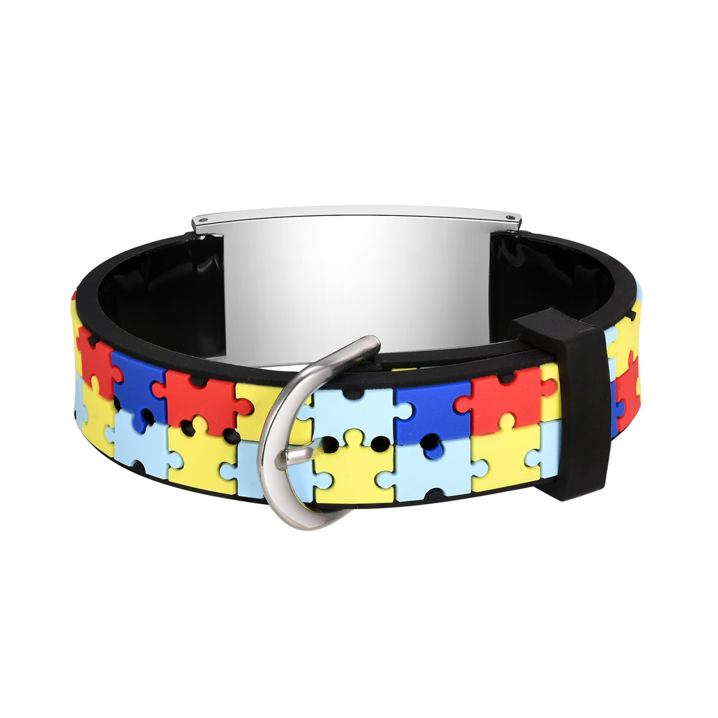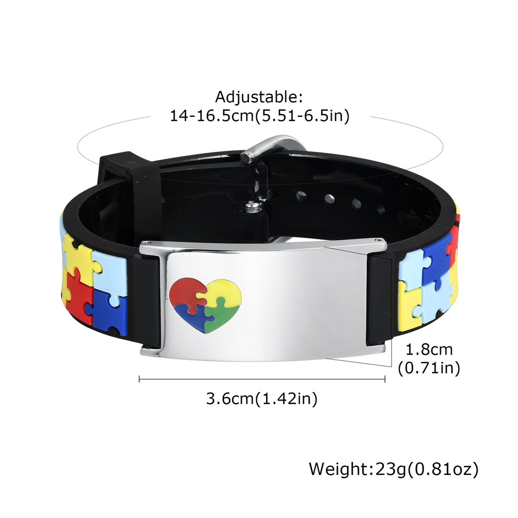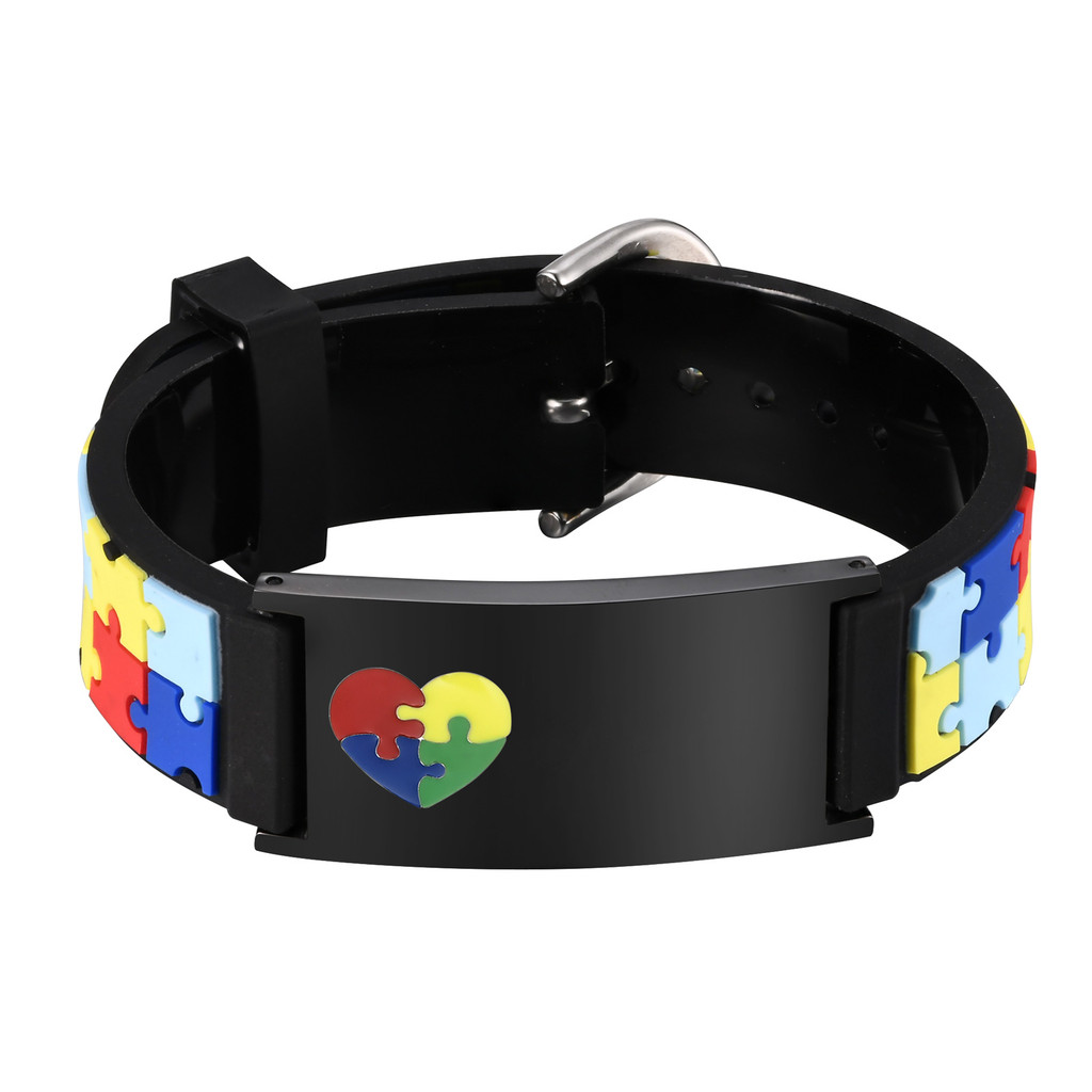 Vnox Autismo Em Forma De Coração Quebra-Cabeça Logotipo Ajustável Pulseira Infantil , Gravura Aço Inoxidável De Identifi